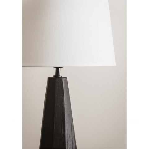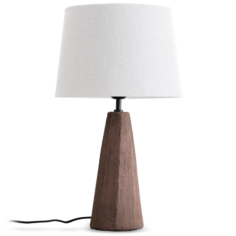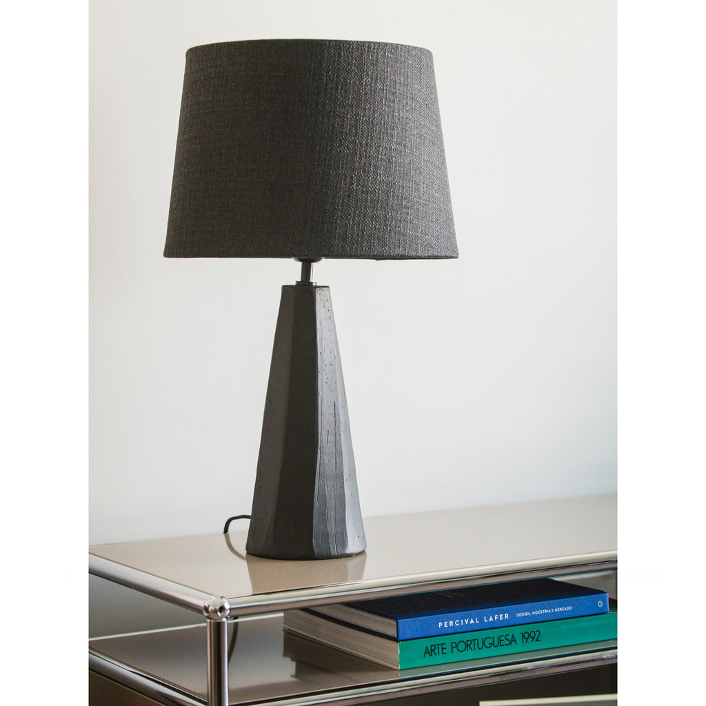 Descrição Candeeiro de mesa feito de forma artesanal em barro com abjaur de efeito alinhado. Cabo têxtil e interruptor preto.