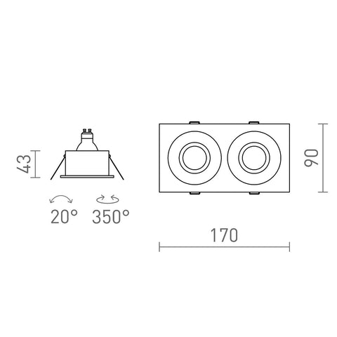 Spot de encastrar LED com capacidade de inclinação para fontes de luz LED GU10, adequado para casas de banho. Spot direcionável com IP65 concebido para instalação de embutir em tetos de gesso cartonado (pladur). |