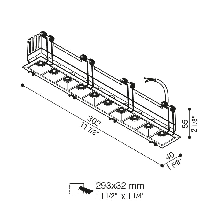 Luminária tipo downlight de encastrar no teto, constituída por módulos de 10 lentes LED com alta fidelidade cromática CRI>95. Desenvolvido para instalação embutida em tetos falsos ou em laje de betão (necessidade de caixa de encastrar), combina desempenho luminoso com design minimalista discreto. Com proteção IP65, é adequado para ambientes exteriores ou interiores sujeitos à humidade, como casas de banho, varandas ou alpendres. Versão regulável (dimmable) sob consulta. |