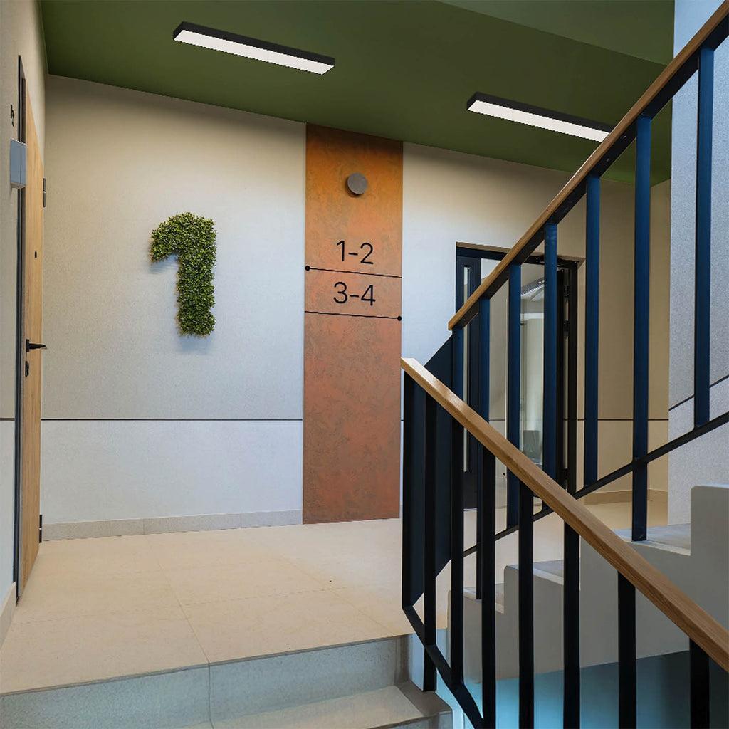 | Descrição | Plafon de teto LED para utilização no interior, com uma estrutura minimalista. De instalação saliente, é ideal para corredores os espaços mais alongados em escritórios ou em residencial. |