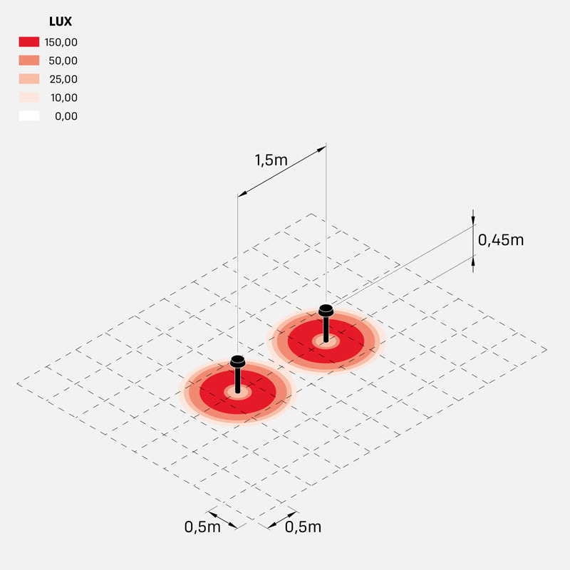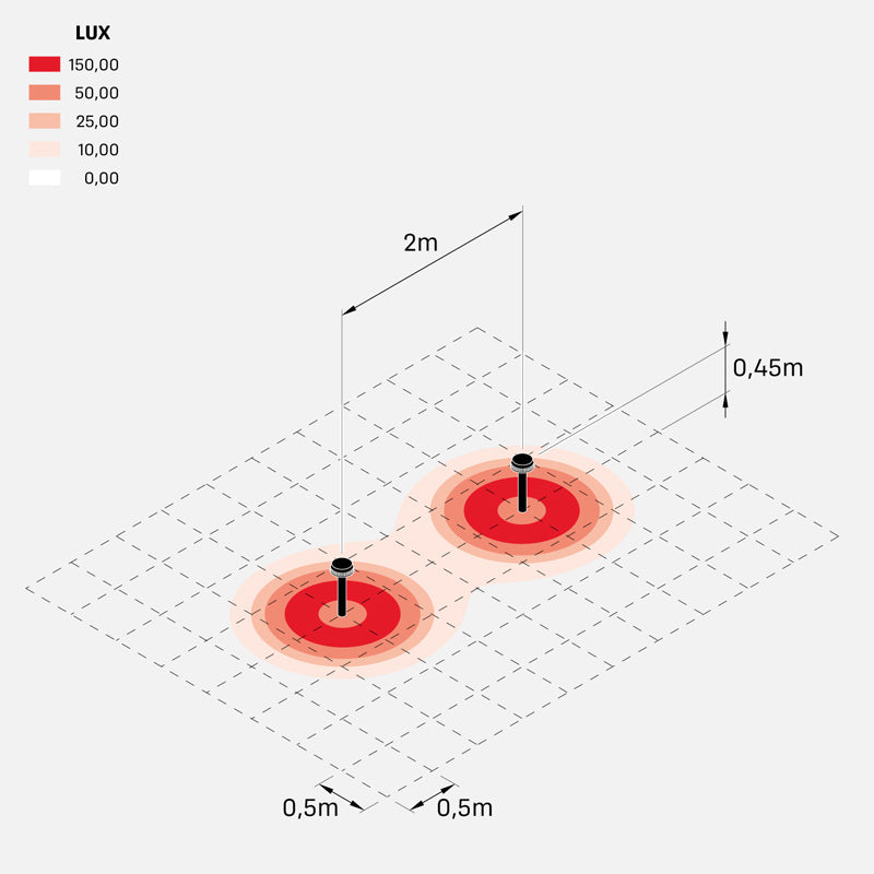 Emissão de luz distribuída por um difusor em policarbonato com tripla estabilização UV e tratamento anti-riscos e anti-UV. Construção durável com corpo em alumínio fundido. Elevada resistência à sujidade e água (IP66 e IK10), e à corrosão, assegurada por um tratamento de passivação à base de zircónio e revestimento de resina de poliéster com estabilização UV, protegendo contra a oxidação e o desvanecimento da cor.