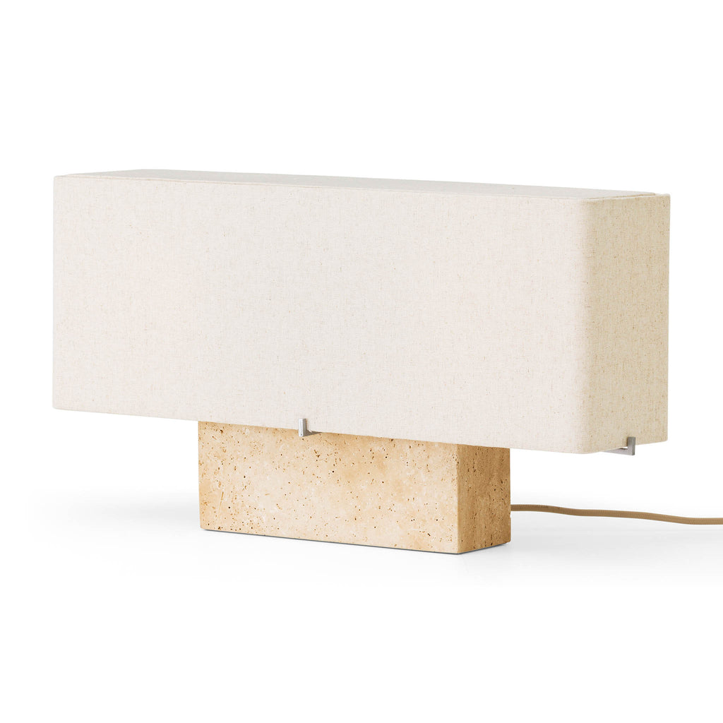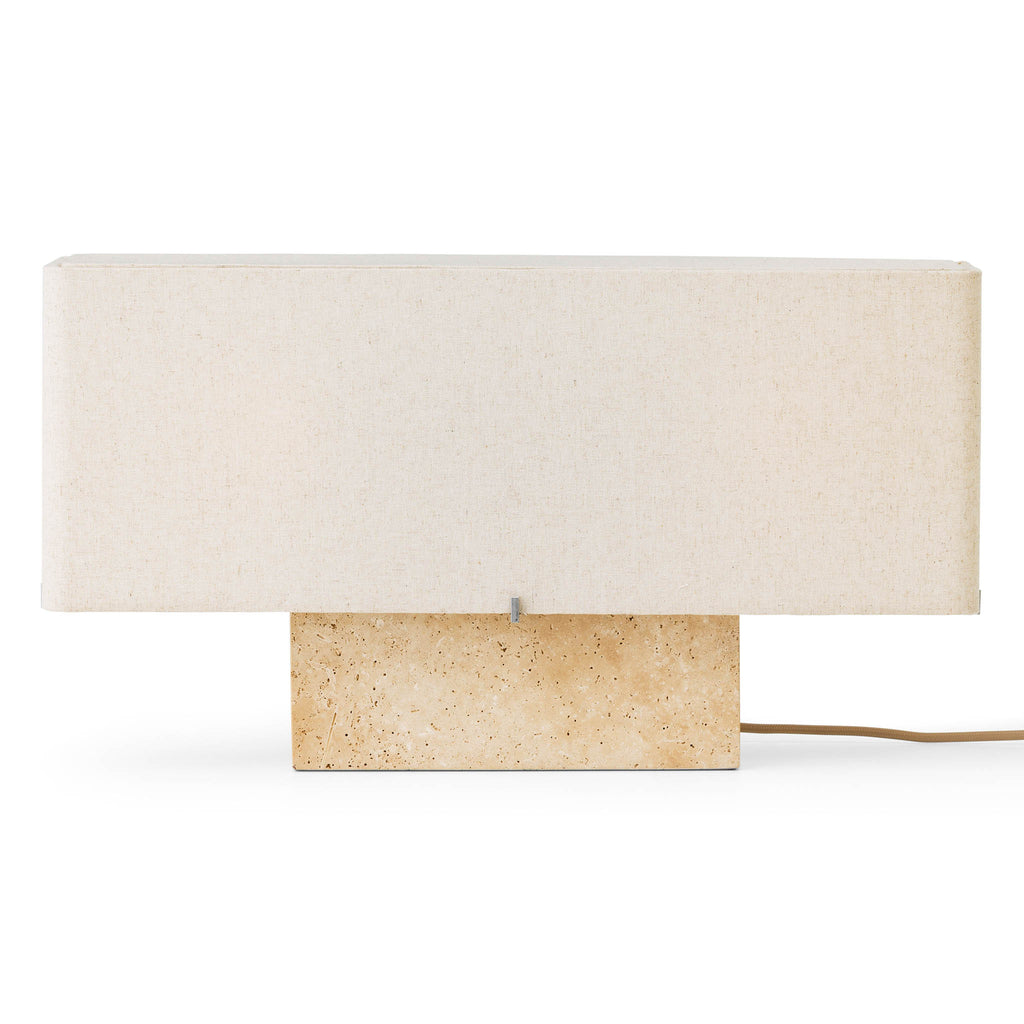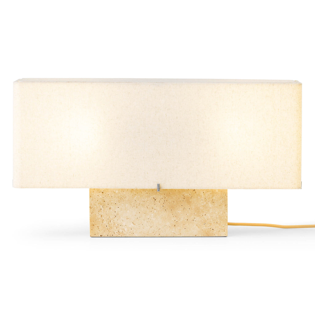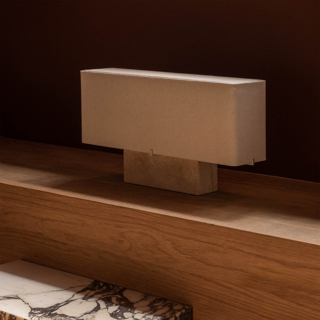 | Materiais | Travertino, alumínio e linho |