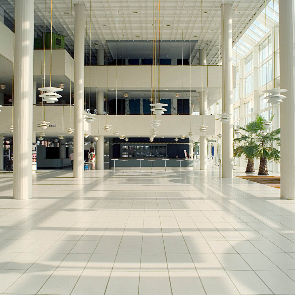 Foi redesenhada em 1979 por dois arquitetos dinamarqueses – Sophus Frandsen e Ebbe Christensen – para o edifício de exposições Charlottenborg em Copenhaga. Para resolver o problema do ofuscamento, os dois arquitetos decidiram adicionar uma pequena cúpula azul. Adicionaram também um acabamento pintado em branco mate para garantir uma luz mais uniforme e confortável – ideal para museus e salas de exposições ou como iluminação geral em ambientes com tetos altos.