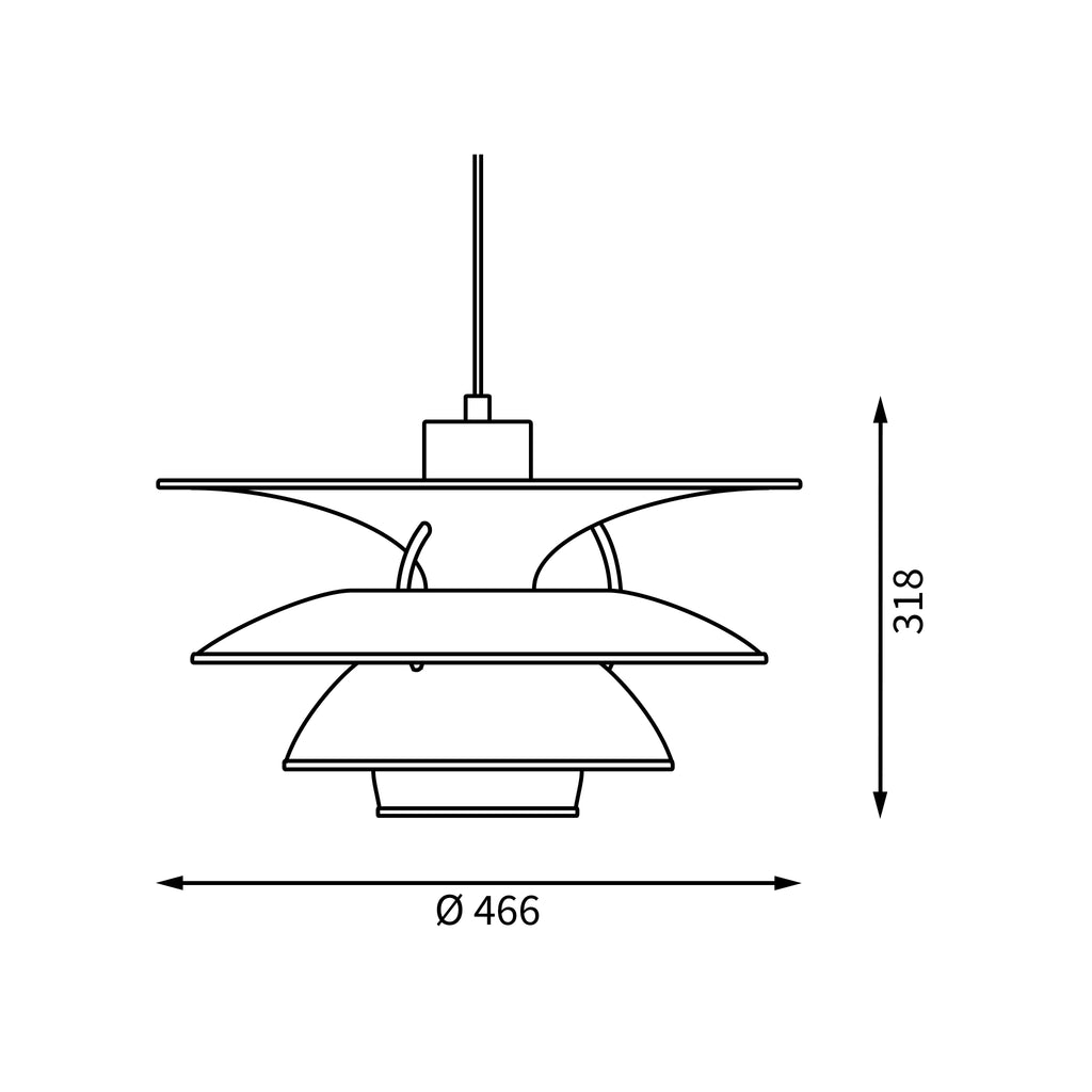 Descrição Poul Henningsen projetou o seu sistema de 3 abajures entre 1925 e 1926, primeiramente desenhadas para uma exposição em Paris. O seu trabalho com a Louis Poulsen continuou até à sua morte em 1967. Ao longo da sua vida, Henningsen procurou criar um candeeiro sem ofuscamento, direcionando a luz onde era mais necessária e criando sombras suaves.