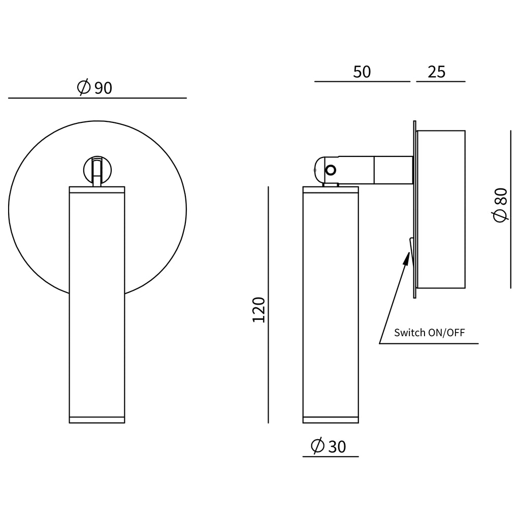 | Base parede (cm) | ⌀9 H12,5 - interruptor on/off na base |