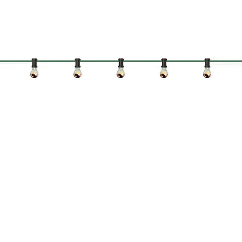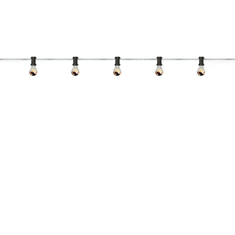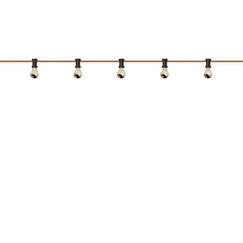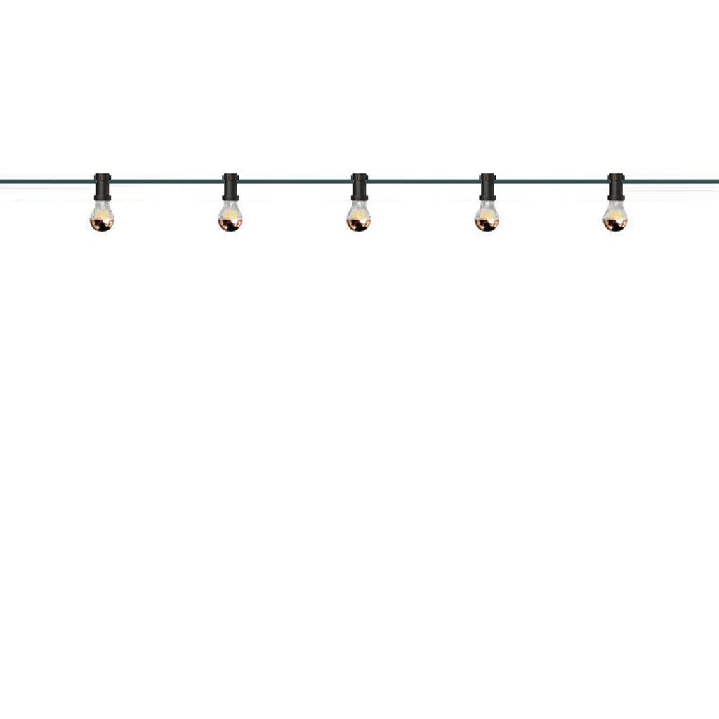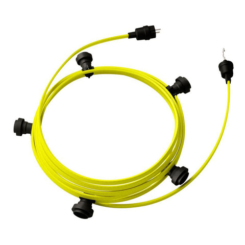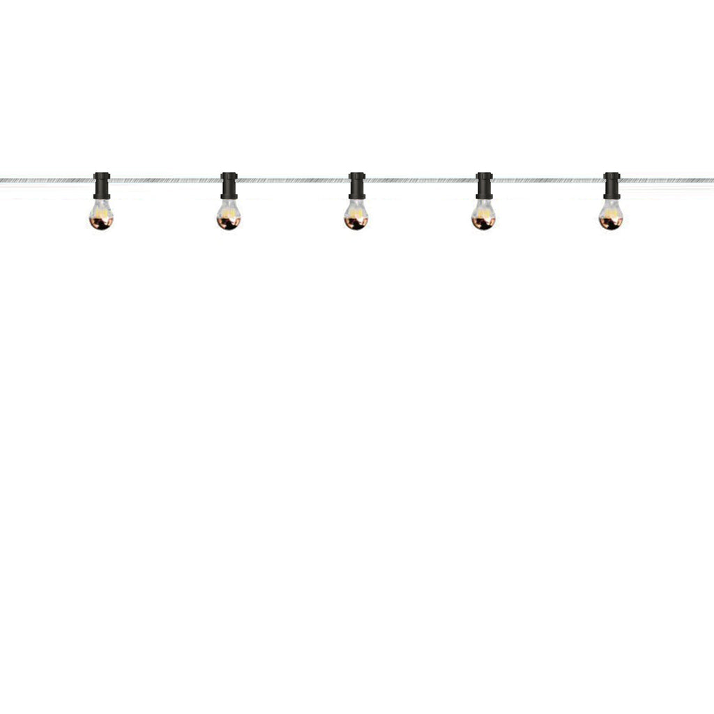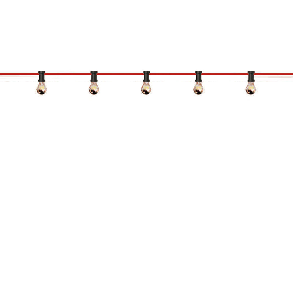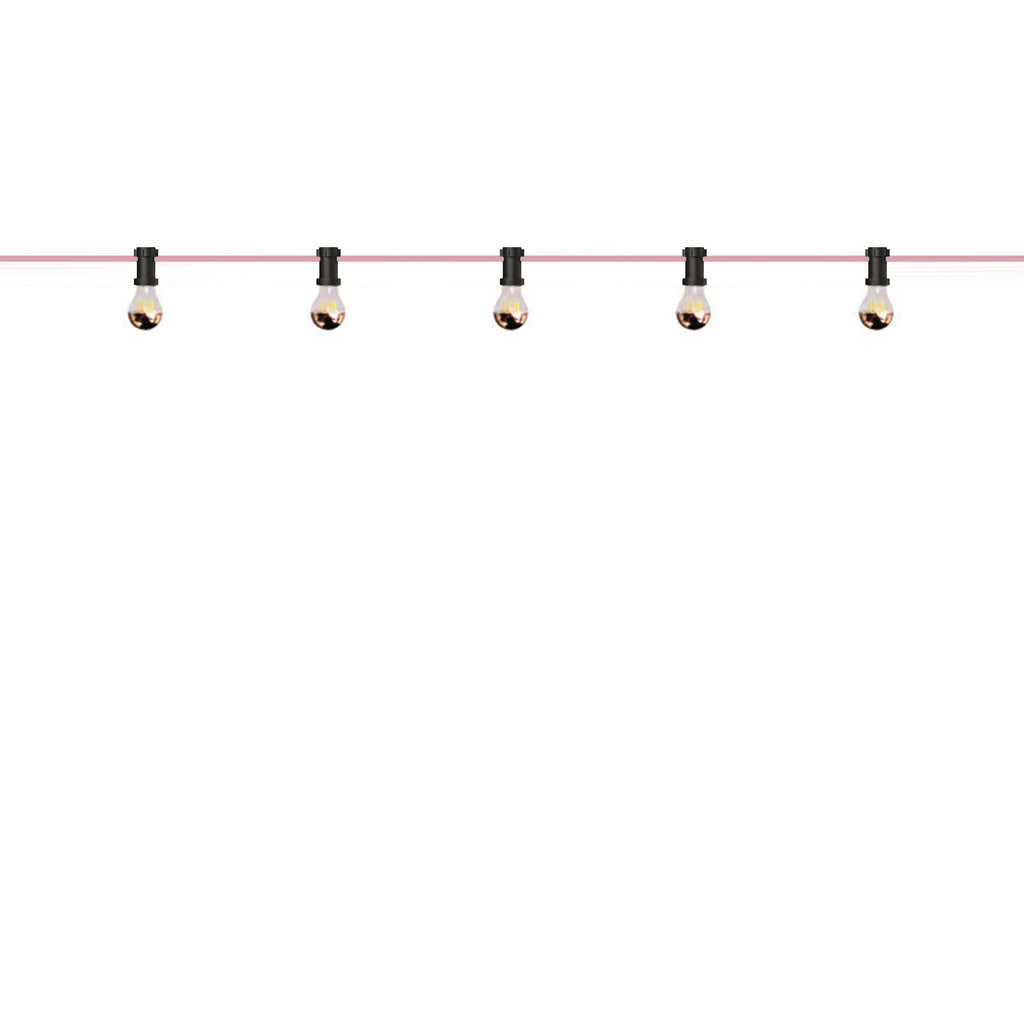 Descrição Sistema de iluminação grinalda exterior com cabo plano retangular têxtil incluindo os casquilhos E27, ficha e gancho de suporte.
