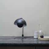 O modelo VP4 é uma versão ligeiramente diferente do candeeiro de mesa Flowerpot VP3 na qual a base larga e circular é composta por uma barra de metal contínua que se prolonga para formar a haste, onde dois segmentos paralelos suportam o abajur e permitem ajustar a sua posição. Isto torna o candeeiro uma afirmação decorativa e, ao mesmo tempo, uma luz de trabalho prática para uma secretária ou recanto de leitura. Por outro lado, o design de "barra dupla" confere ao candeeiro uma estética única, de cariz mais industrial e retro.