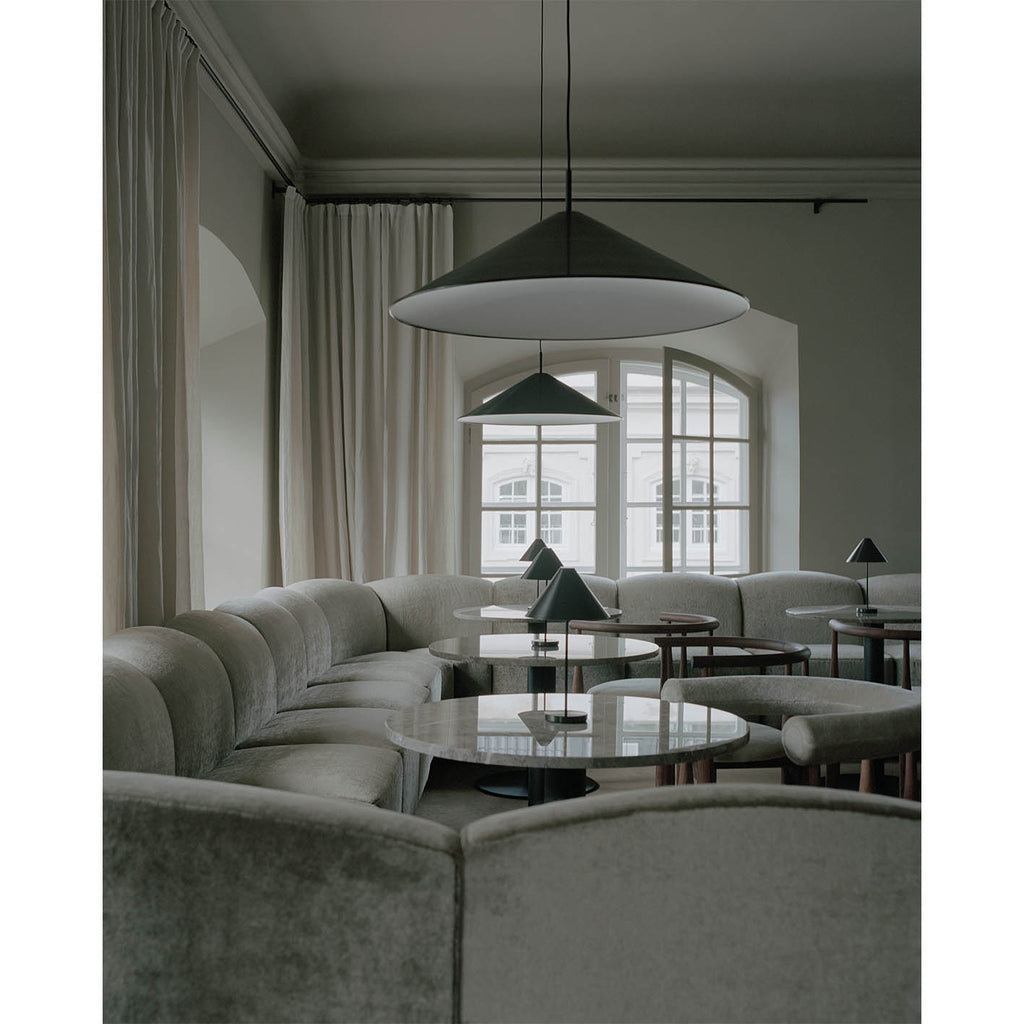 | Descrição | A série de iluminação Brolly demonstra a força das formas minimalistas. Precisos e ponderados, estes candeeiros elegantes exibem o tipo de simplicidade, quase enganadora, que os torna elementos intemporais em qualquer decoração. Nesta versão suspensa do candeeiro Brolly, o abajur cónico é ampliado em diâmetros de 70 e 90cm, nos quais os seus volumes acentuados realçam a expressão arquitetónica do design. O difusor côncavo espalha uma luz suave e generosa que não encandeia quando está sentado debaixo do candeeiro. Deixe o candeeiro pairar por cima da mesa de jantar ou onde quer que se procure uma luz agradável e uma silhueta significativa. Design by Knut Bendik Humlevik |