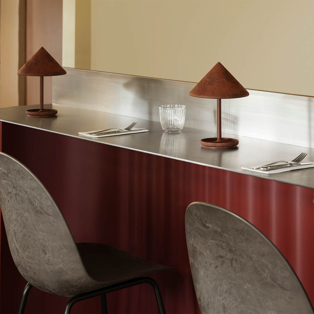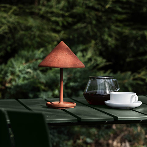 | Materiais | Abajur em Matek™ (variações possíveis devido aos materiais reciclados), corpo em resíduos de café misturados com resíduos eletrônicos pós-consumo. Base em aço lacado |
