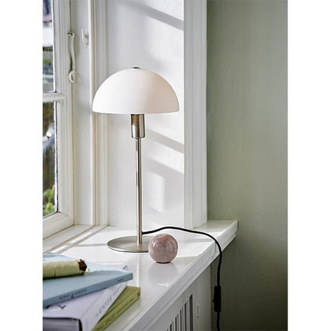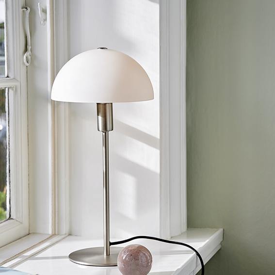 Brushed steel base opal white shade