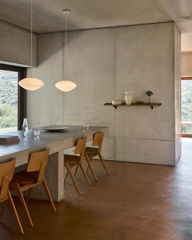 Descrição Inspirado na luz quente e difusa dos raios matinais que atravessam a neblina, Mist é uma versão moderna do clássico candeeiro com globo de vidro. Fabricado em vidro opalino soprado com detalhes em alumínio lacado a branco e um cabo têxtil, o candeeiro suspenso Mist está disponível em dois tamanhos.