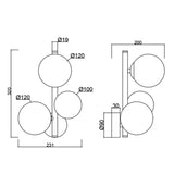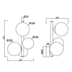 Candeeiro aplique de parede com três globos em vidro.