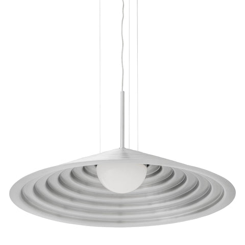 | Descrição | Com a sua silhueta ondulada e escalonada em alumínio escovado e um brilho suavemente difuso, o candeeiro suspenso Chancery oferece presença sem peso - um design concebido para ser pendurado alto e manter a divisão num equilíbrio tranquilo. Chancery emite uma luz ambiente suave que convida à calma e à contemplação. Design by Norm Architects |