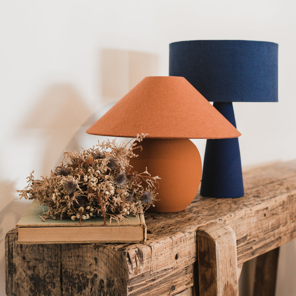 | Descrição | Candeeiro de mesa feito de forma artesanal em barro com abajur de efeito alinhado. |