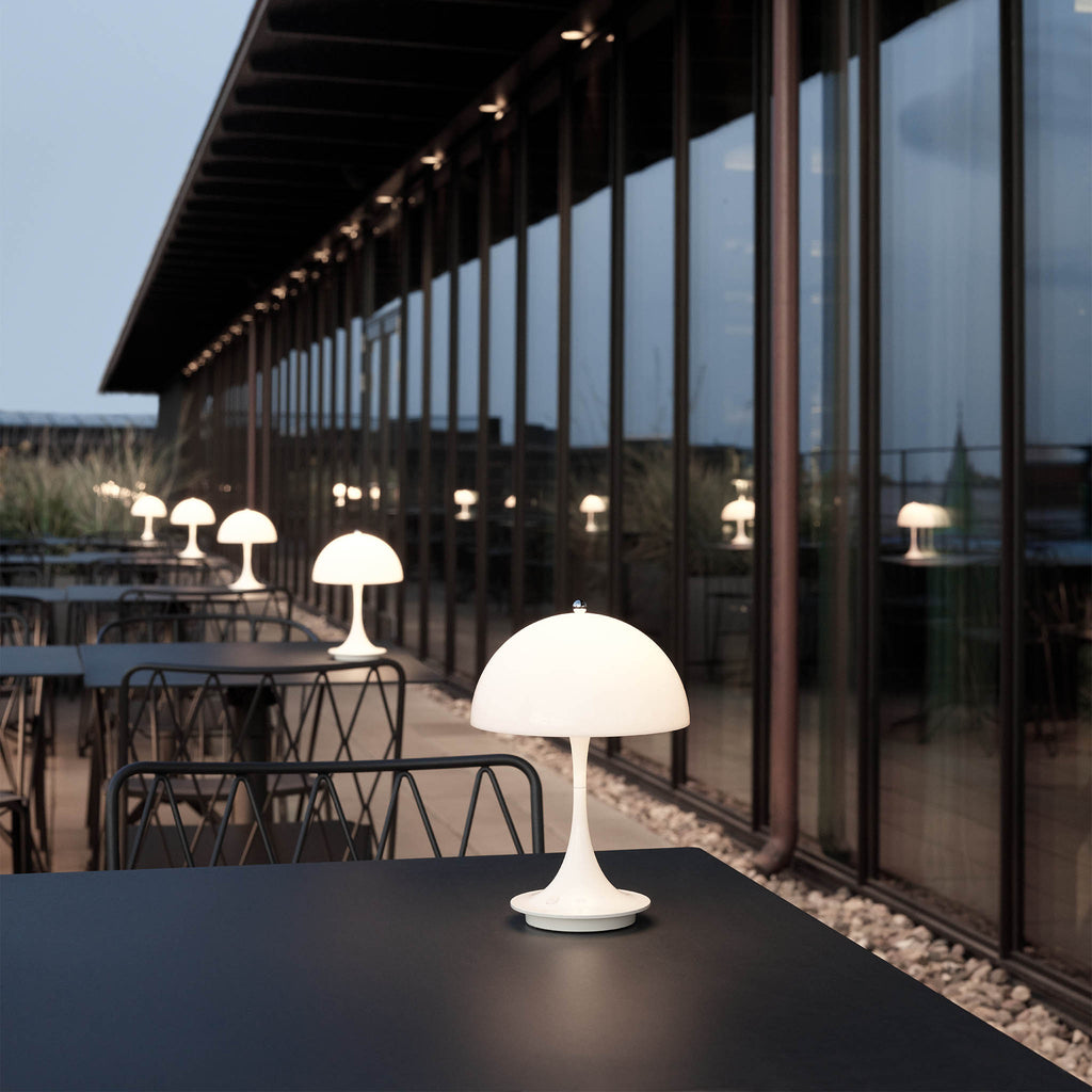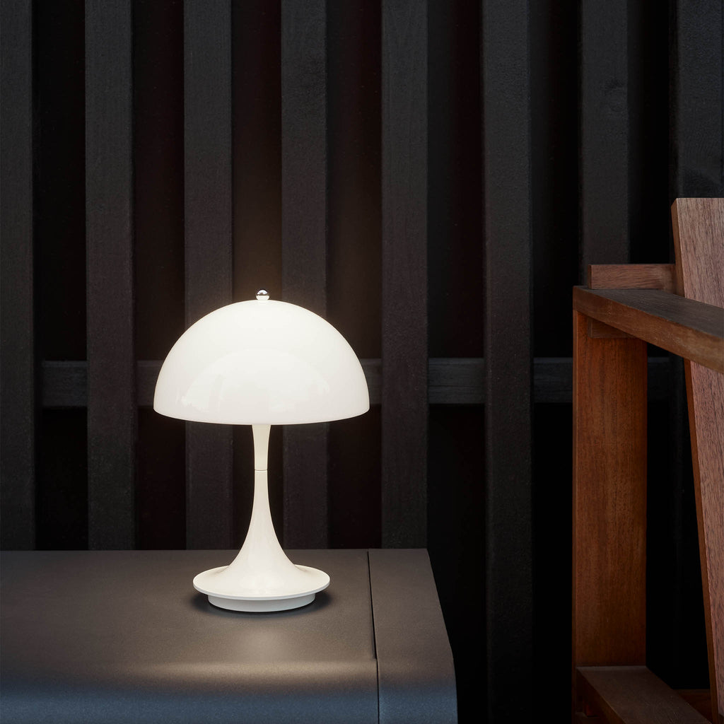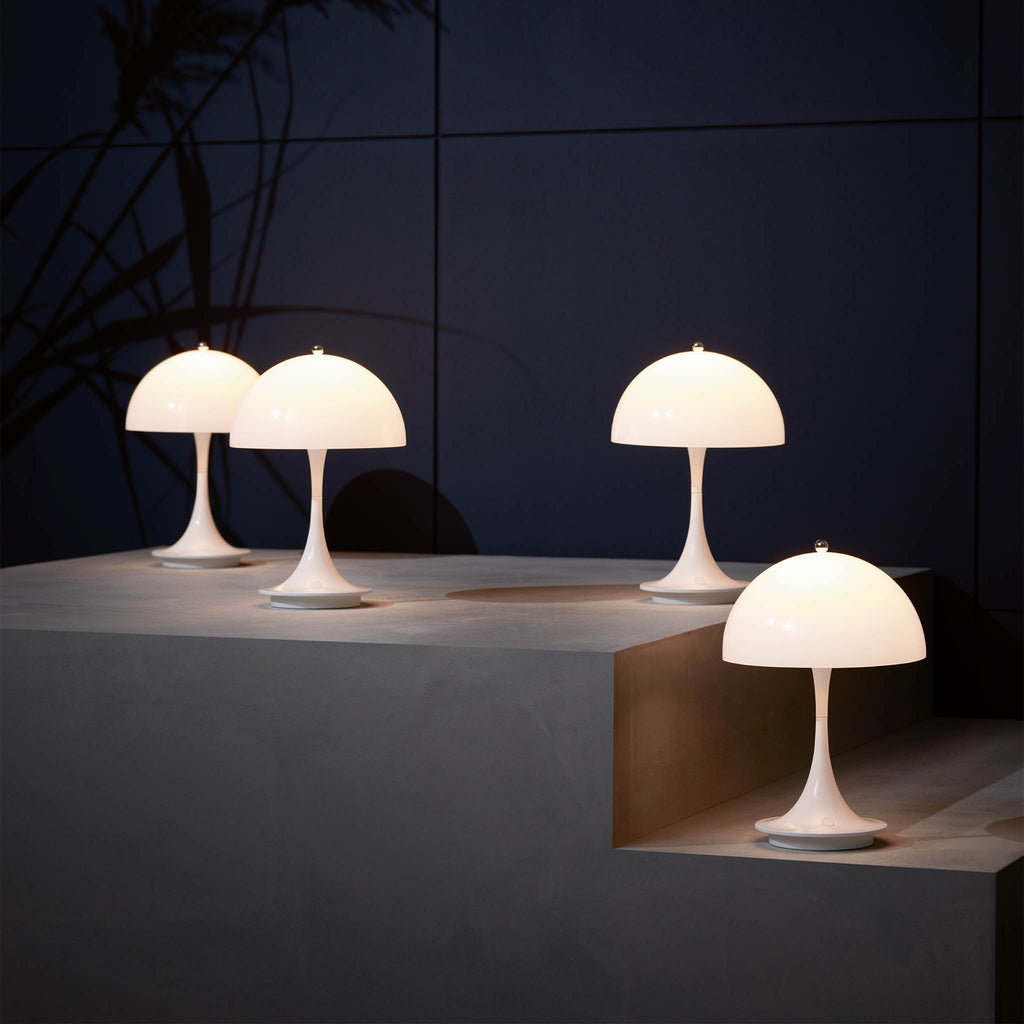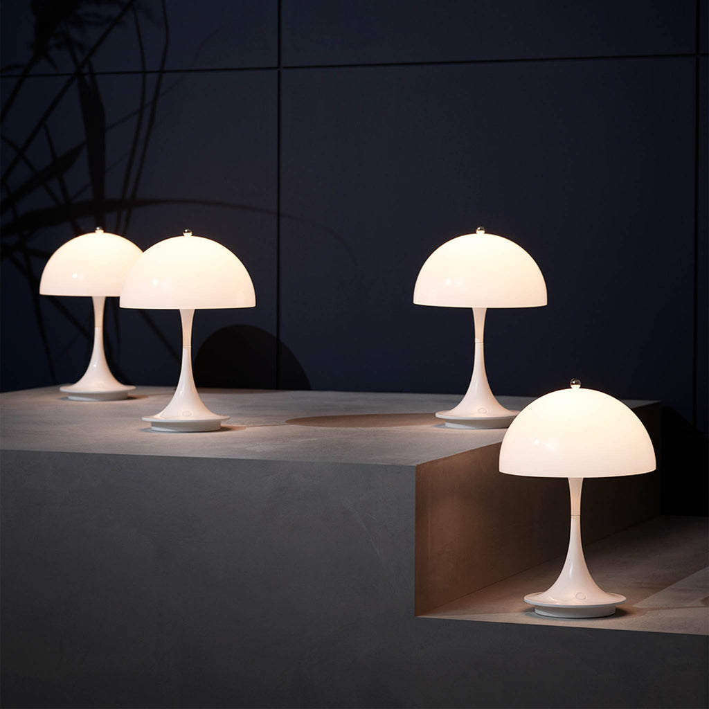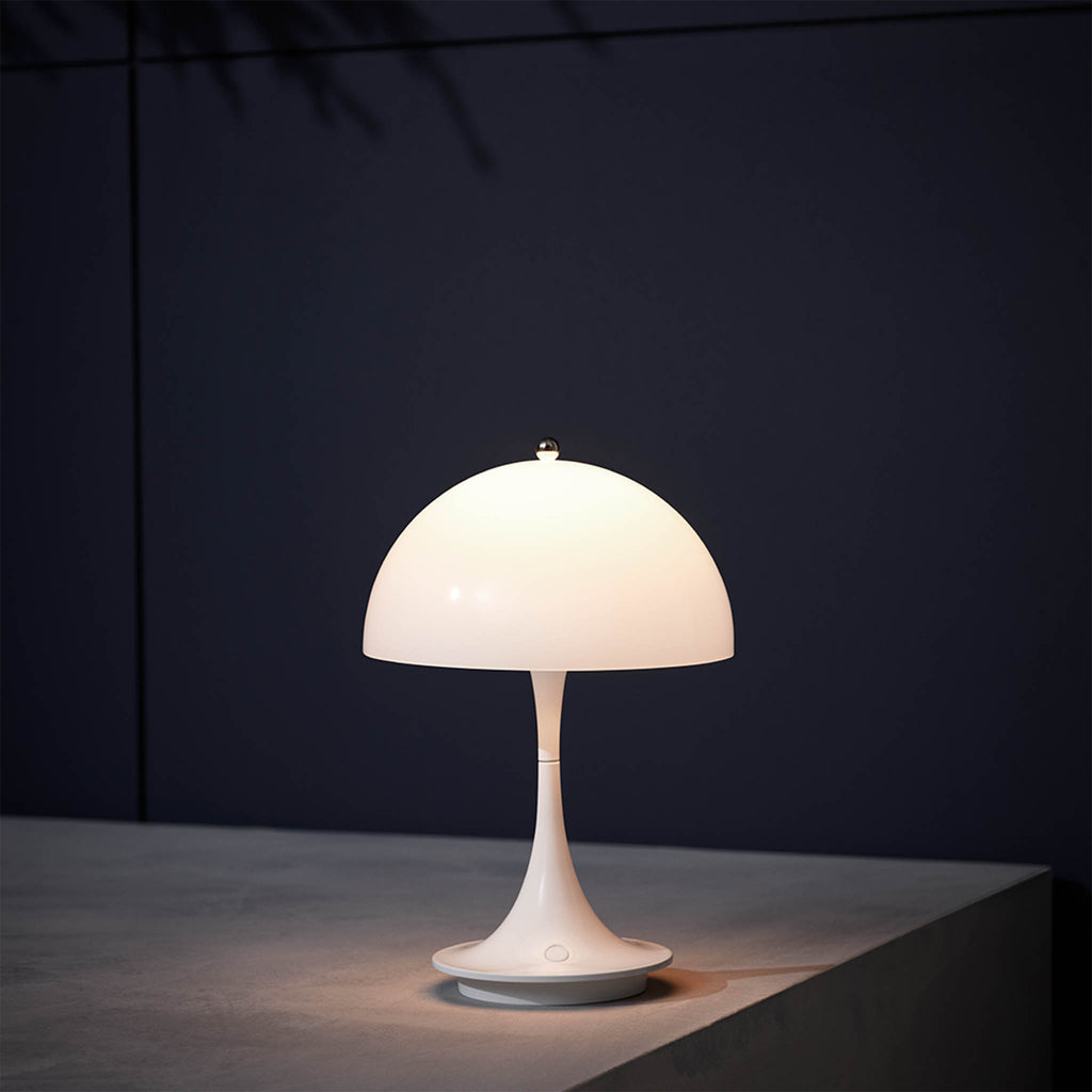 O modelo Panthella 160 é uma das duas versões portáteis e sem fios dos candeeiros de mesa Panthella. Oferece uma solução mais pequena, leve, moderna e flexível, com a conveniência da bateria recarregável que permite facilmente transportá-lo entre divisões da casa ou utilizá-lo no exterior, na varanda ou no jardim.