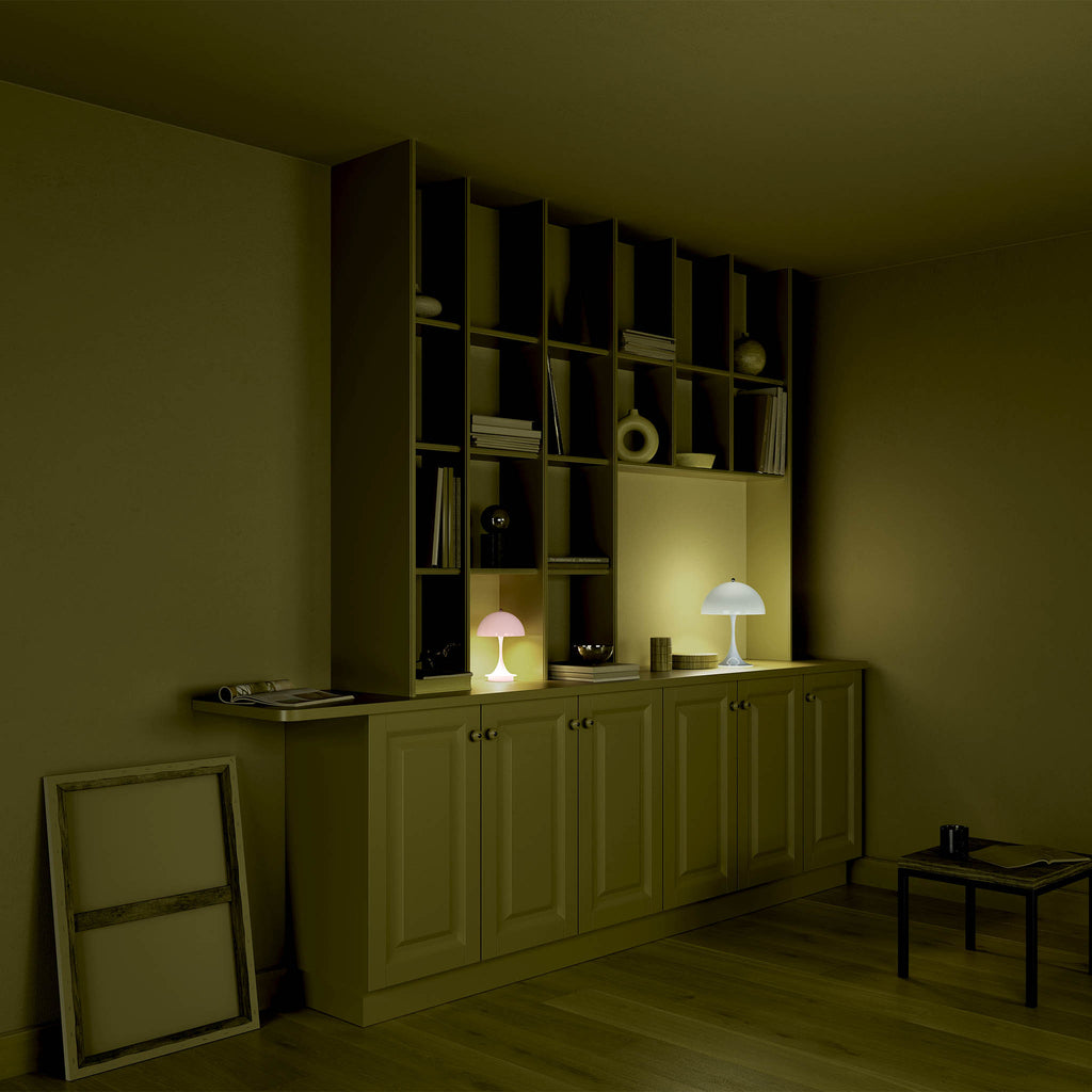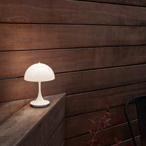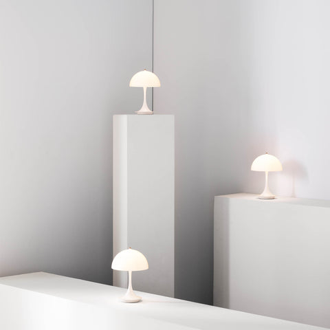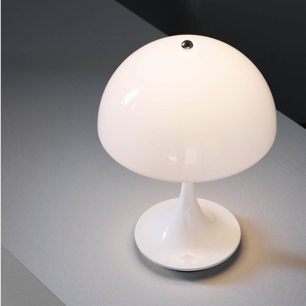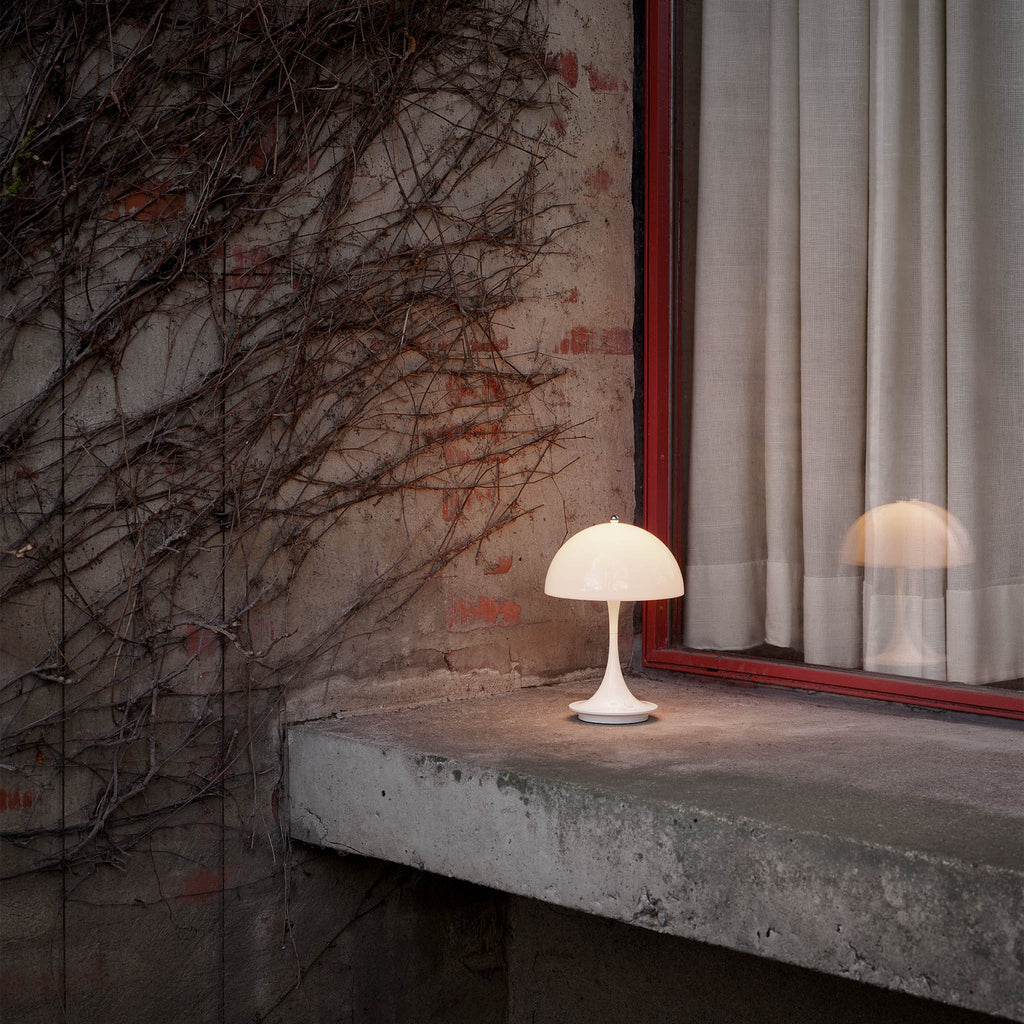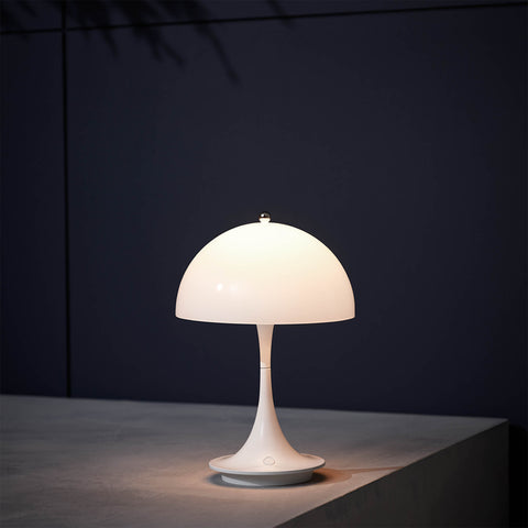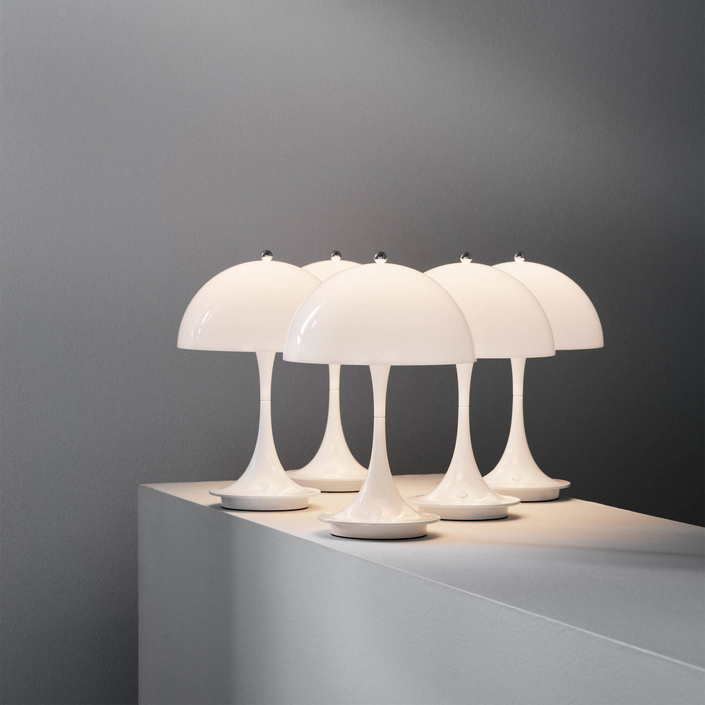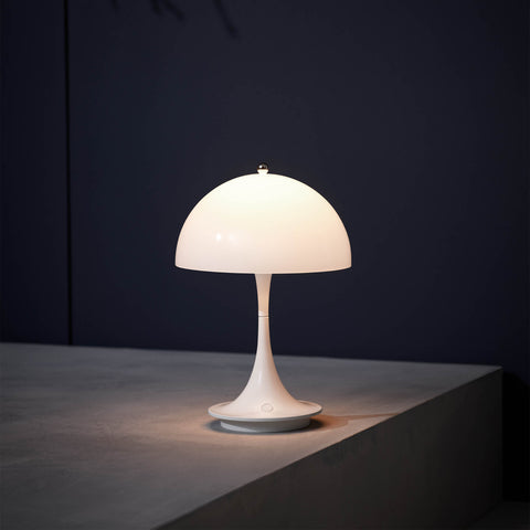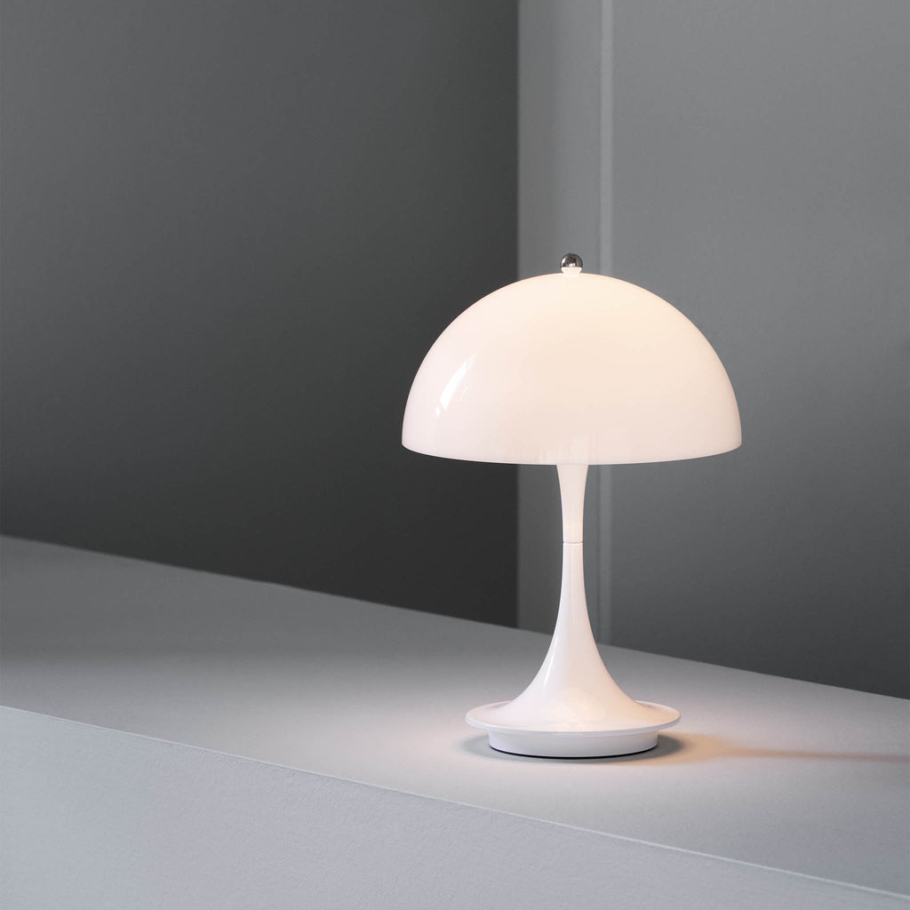 O modelo Panthella 160 é uma das duas versões portáteis e sem fios dos candeeiros de mesa Panthella. Oferece uma solução mais pequena, leve, moderna e flexível, com a conveniência da bateria recarregável que permite facilmente transportá-lo entre divisões da casa ou utilizá-lo no exterior, na varanda ou no jardim.