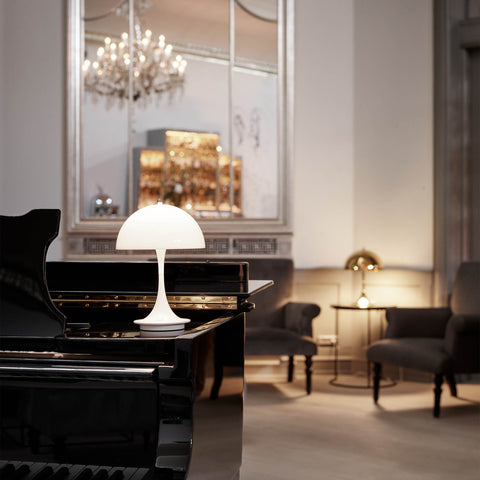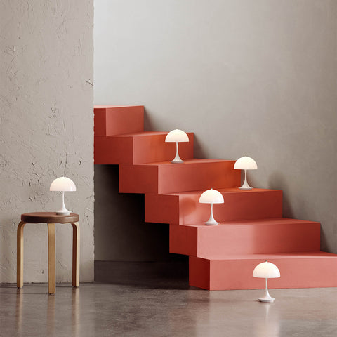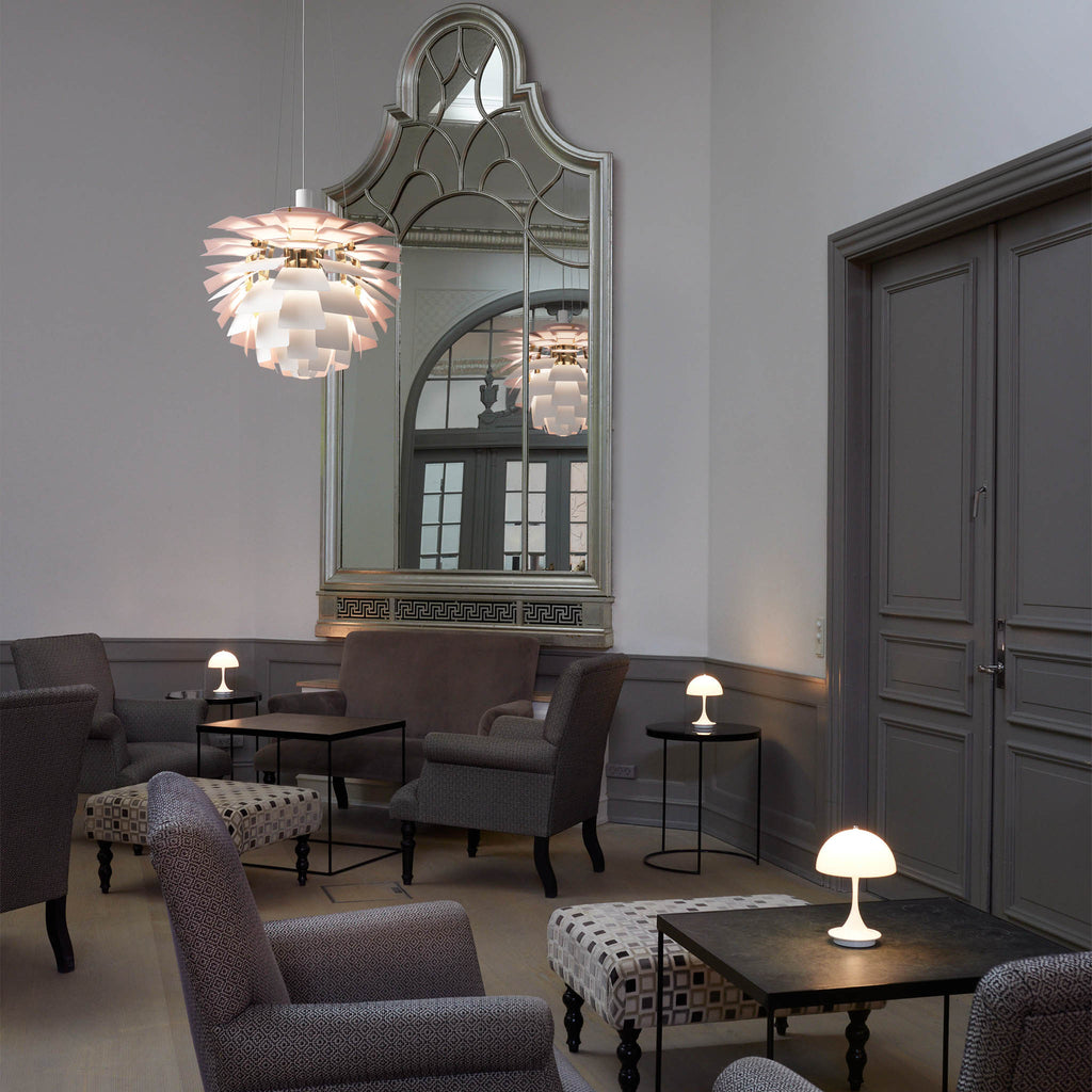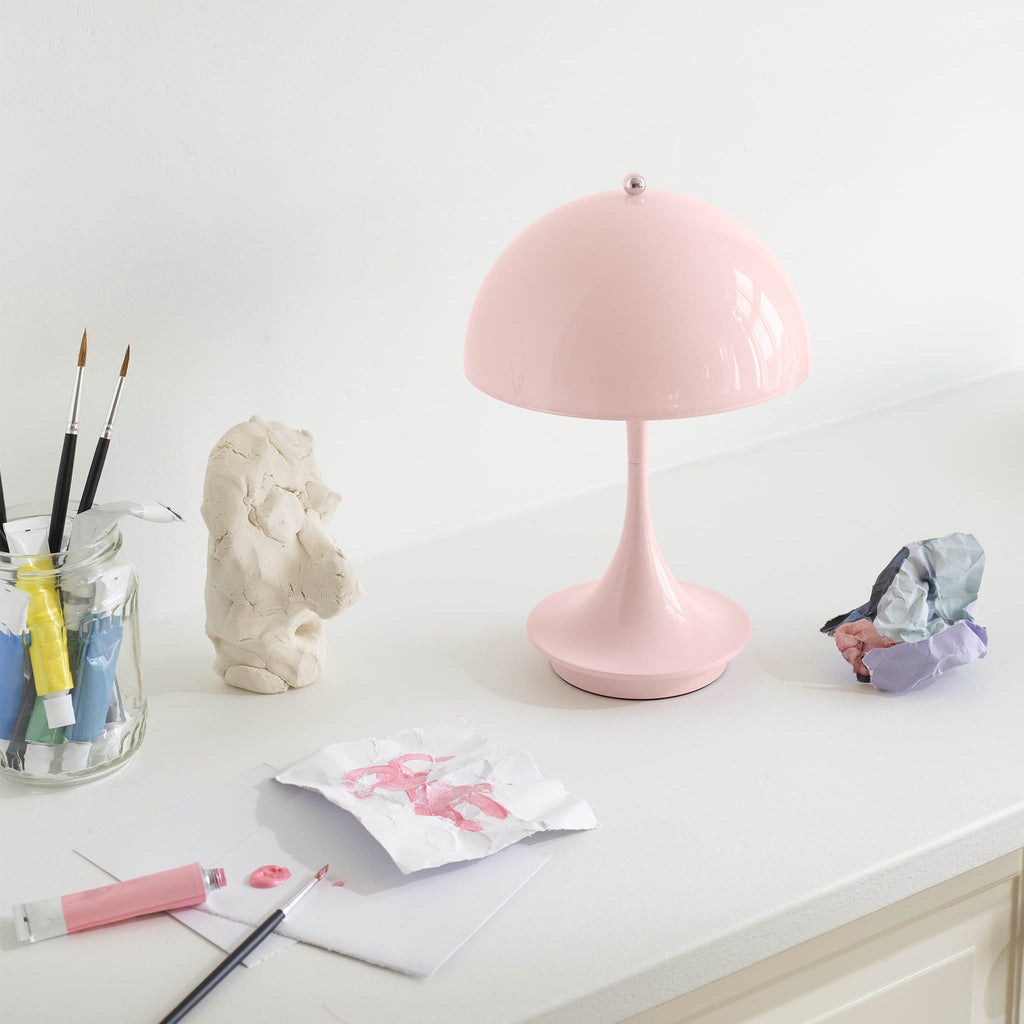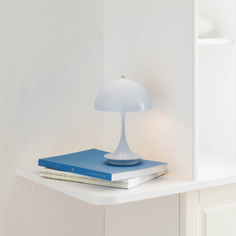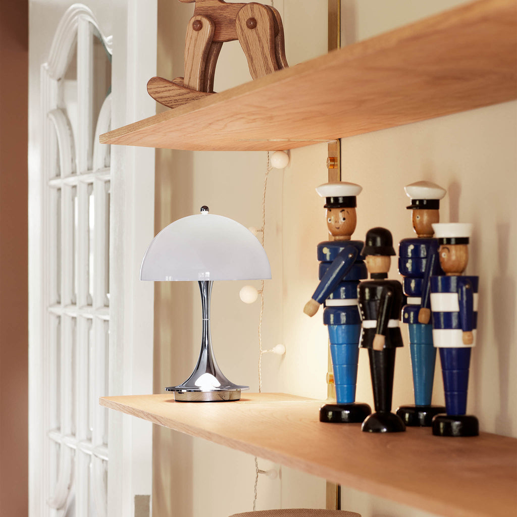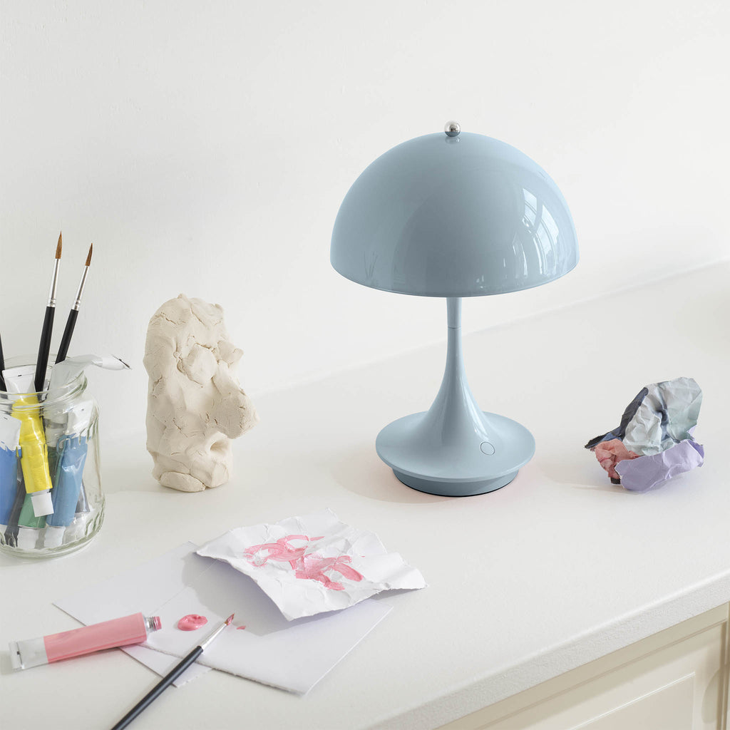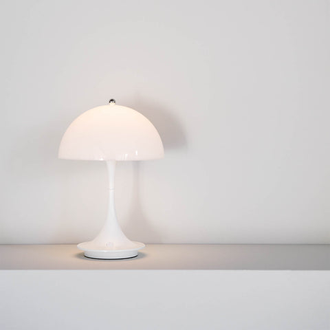O modelo Panthella 160 é uma das duas versões portáteis e sem fios dos candeeiros de mesa Panthella. Oferece uma solução mais pequena, leve, moderna e flexível, com a conveniência da bateria recarregável que permite facilmente transportá-lo entre divisões da casa ou utilizá-lo no exterior, na varanda ou no jardim.