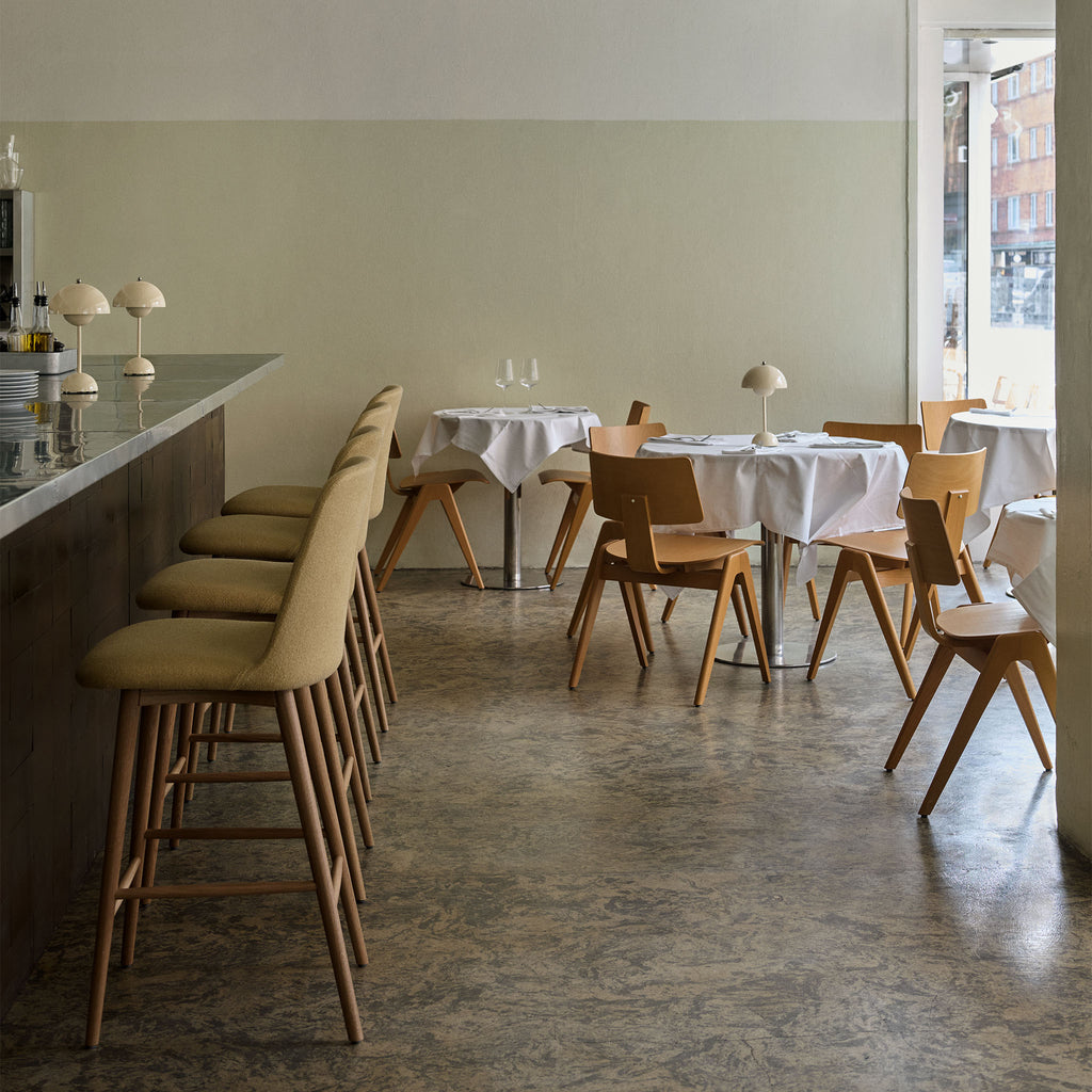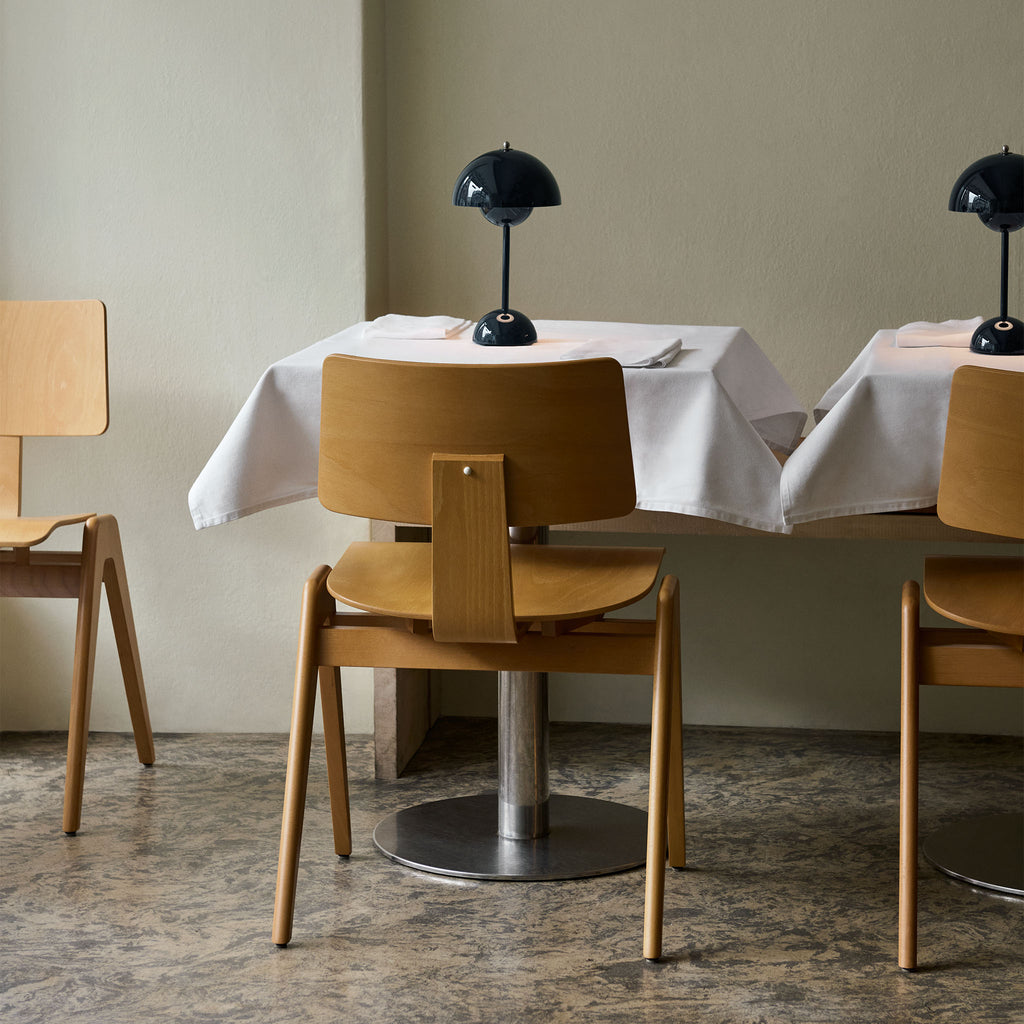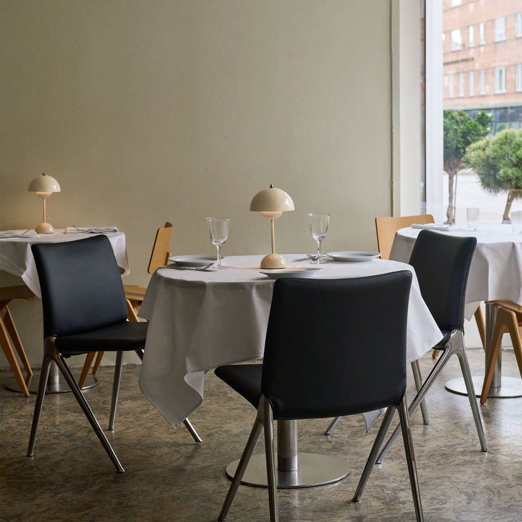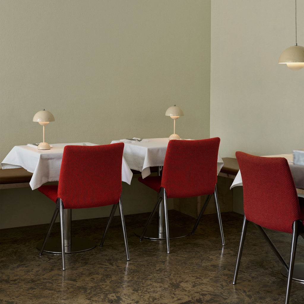 Panton nasceu na tradição do modernismo dinamarquês e criou o seu próprio estúdio em meados da década de 1950. Discípulo de Arne Jacobsen, rapidamente experimentou com formas circulares e esféricas, motivos que se tornariam centrais nos seus projectos. Embora estivesse na vanguarda do Modernismo Dinamarquês de meados do século, a contribuição de Panton foi tudo menos mainstream. Abraçou com entusiasmo novos materiais, fez uso de uma paleta de cores ousadas e imbuiu muitas das suas criações escultóricas com uma forte expressão gráfica e divertida – sem nunca comprometer a qualidade ou o acabamento.