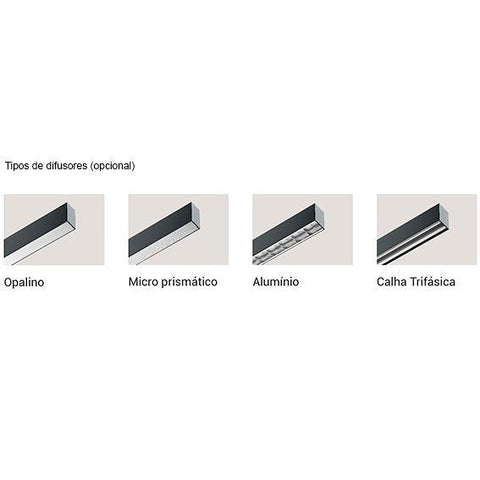 Materiais Alumínio extrudido e difusor opalino (micro prismático ou negro - opcional)