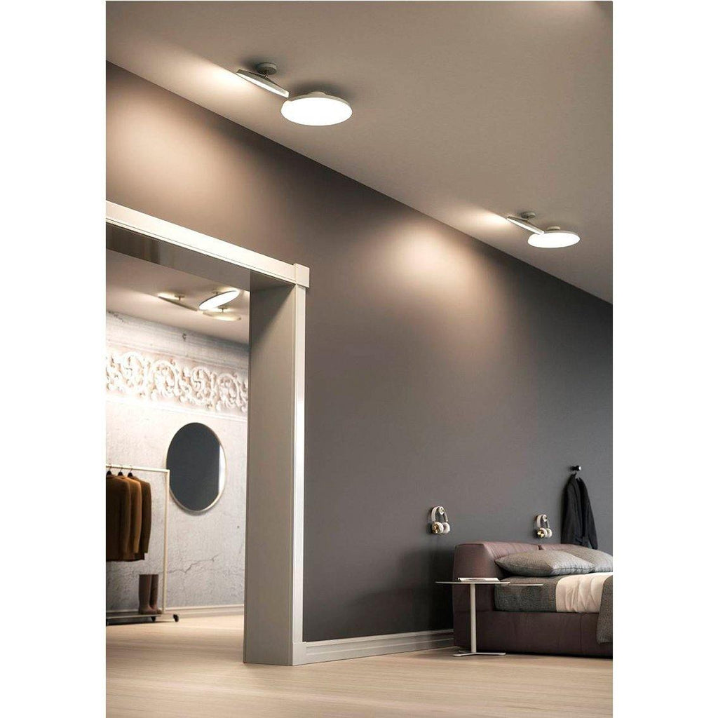 Candeeiro de teto minimalista direcionável. Disponível em 2 tamanhos e 2 acabamentos. |
