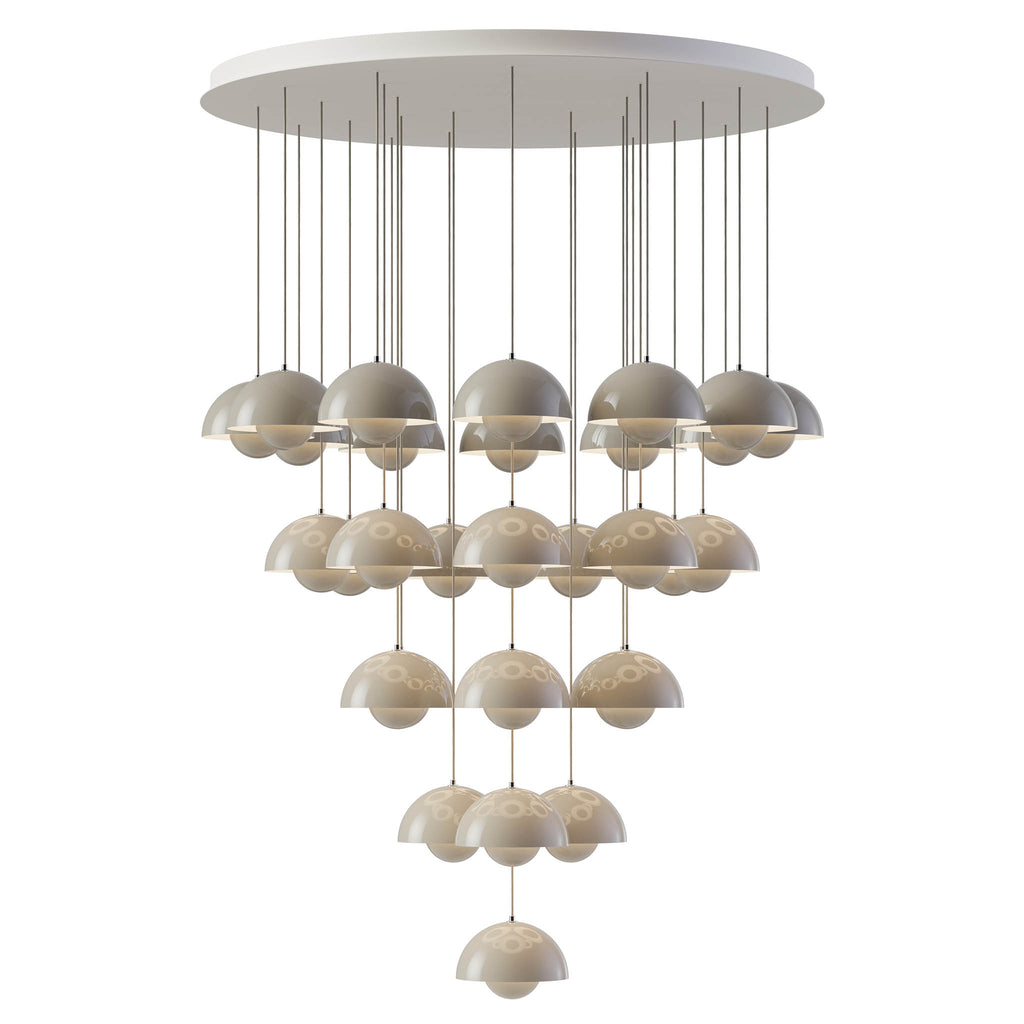 Numa tradução exacta dos desenhos e formações originais do designer, estes candelabros utilizam o icónico Flowerpot em configurações de 10 ou 31 peças.