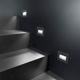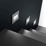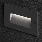 Candeeiro aplique de encastrar em parede adequado para uso exterior. Fabricado em em liga primária de alumínio fundido sob pressão EN-AB46100, altamente resistente à oxidação graças ao tratamento de passivação à base de zircónio e ao revestimento de resina de poliéster estabilizada por UV. Tratamento contra a maresia bordo mare (seaside suitable) - sob consulta |