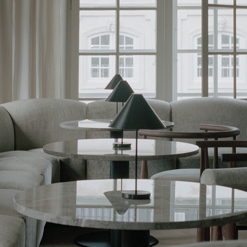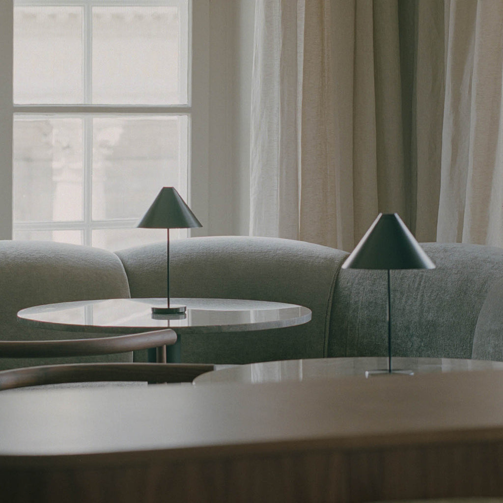 Descrição Candeeiro portátil de design nórdico geométrico e minimalista.
