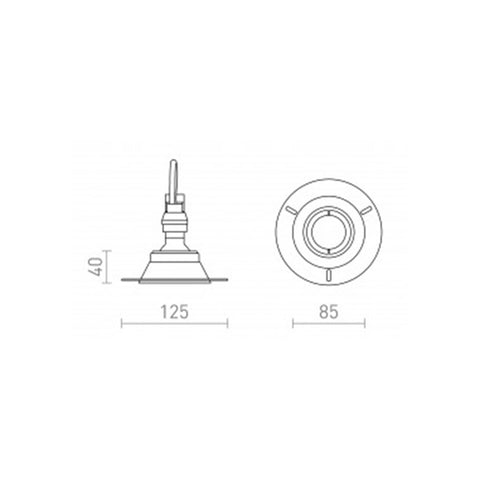 Spot de encastrar LED trimless sem aba para fontes de luz LED GU10, adequado para ambientes húmidos. Para aplicação de embutir em teto falso de pladur, com necessidade de barramento. |