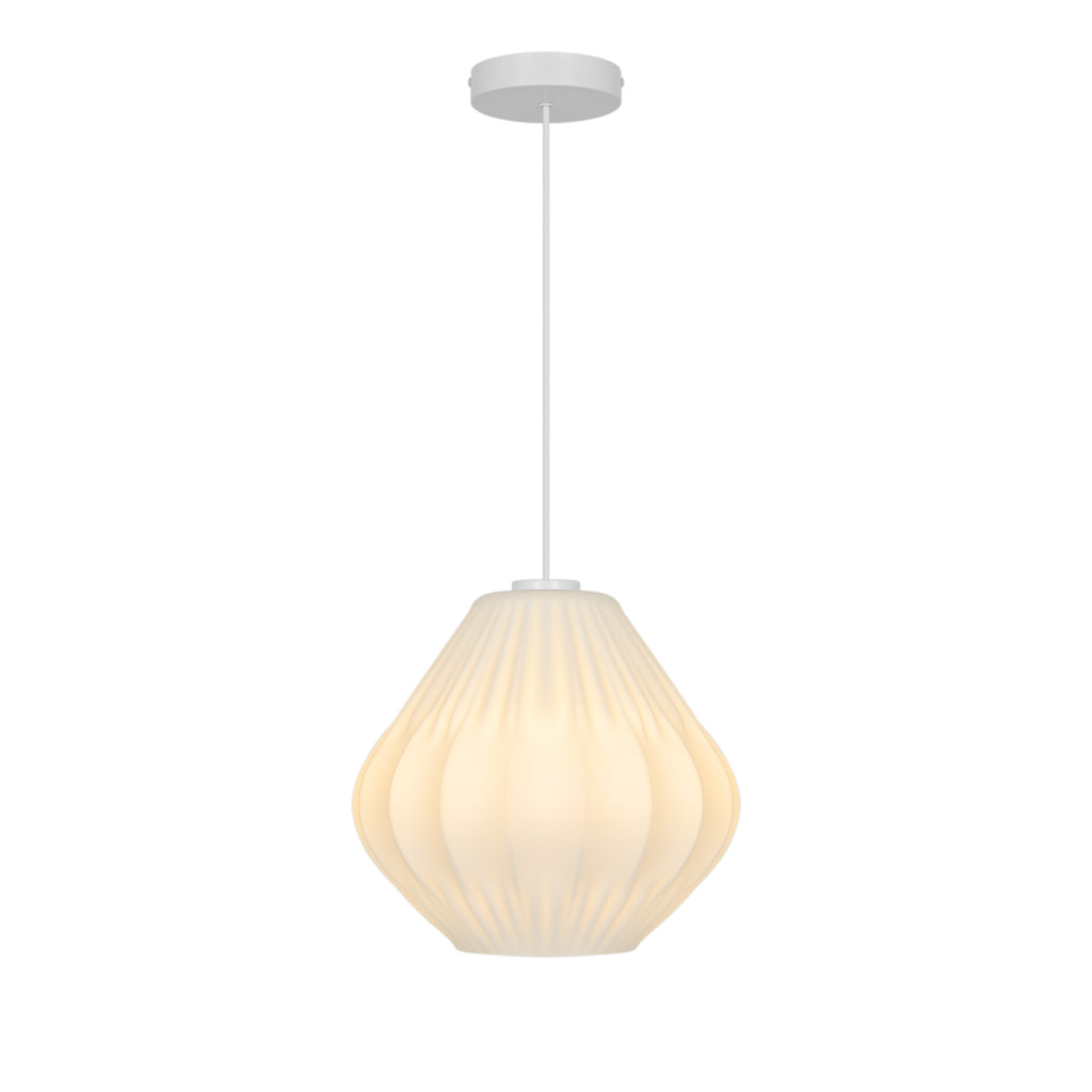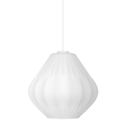Candeeiro suspenso em vidro trabalhado Maluca une o charme clássico a uma estética moderna e minimalista. O abajur em vidro opalino mate difunde a luz de forma suave, criando um ambiente acolhedor e confortável. Os delicados detalhes plissados acrescentam textura e caráter, elevando o design a uma peça elegante e distinta. |
