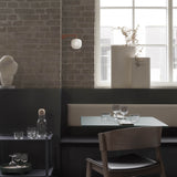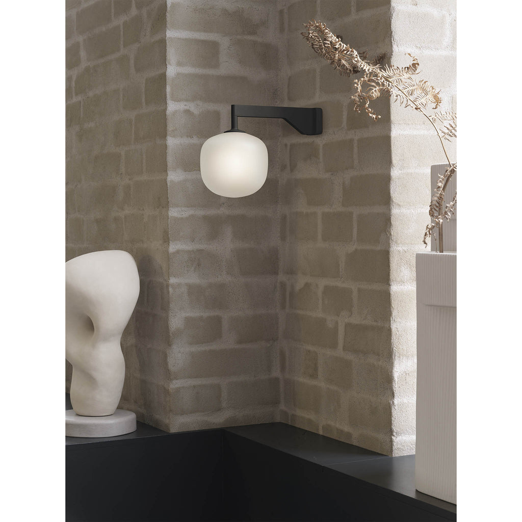 Descrição O candeeiro de parede Rime traz uma perspetiva elegante aos candeeiros de vidro através do seu globo semi-transparente com uma expressão refinada. O design apresenta uma forma característica, inspirada no formato das bolotas, complementada pela forma geométrica do seu braço. O candeeiro de parede Rime possui uma fonte de luz regulável, permitindo ao seu utilizador ajustar a intensidade da luz às suas necessidades individuais, quer seja em casa, num restaurante ou num quarto de hotel.