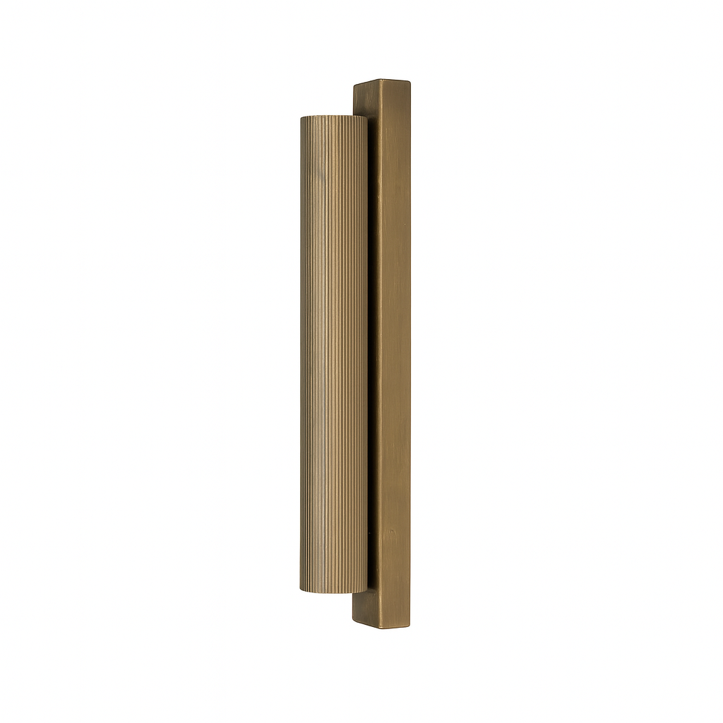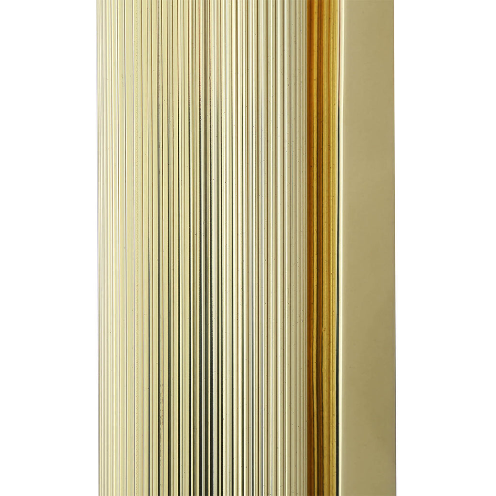 Descrição Candeeiro de parede Royce com um design minimalista e contemporâneo, construído a partir de um único tubo de latão canelado, fixado a um suporte retangular também em latão. Este modelo funciona como um aplique de luz ascendente e descendente, proporcionando uma iluminação equilibrada e sofisticada. Com um perfil fino e pouco profundo, o candeeiro de parede Royce é adequado para halls e corredores de casas e hotéis contemporâneos. É também ideal para utilização em restaurantes elegantes e quartos de hotel como iluminação de realce.