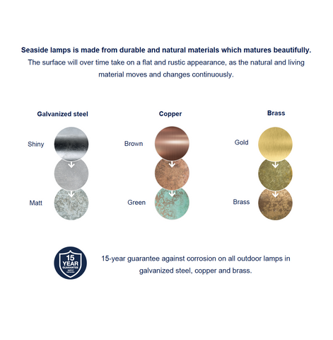 | Referências | 251811031203 / black 201911041030 / copper 201911041031 / galvanized 201911041035 / brass 201911041038 / corten |
