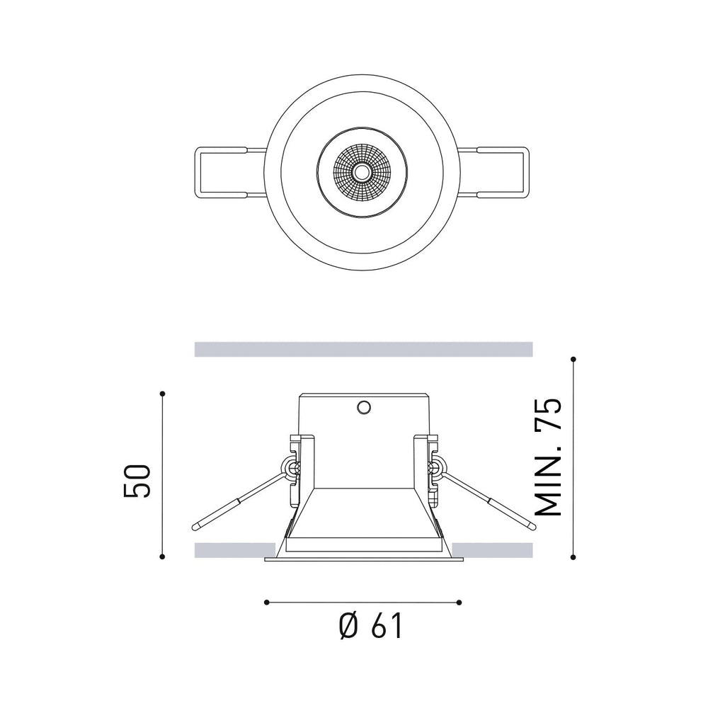 | Referências | A46210111XW Shot Light trim S ⌀4 IP65 white A46210111XN Shot Light trim S ⌀4 IP65 black A46210111XWMG Shot Light trim S ⌀4 IP65 white and metallized gold A46210111XNMG Shot Light trim S ⌀4 IP65 black and metallized gold |