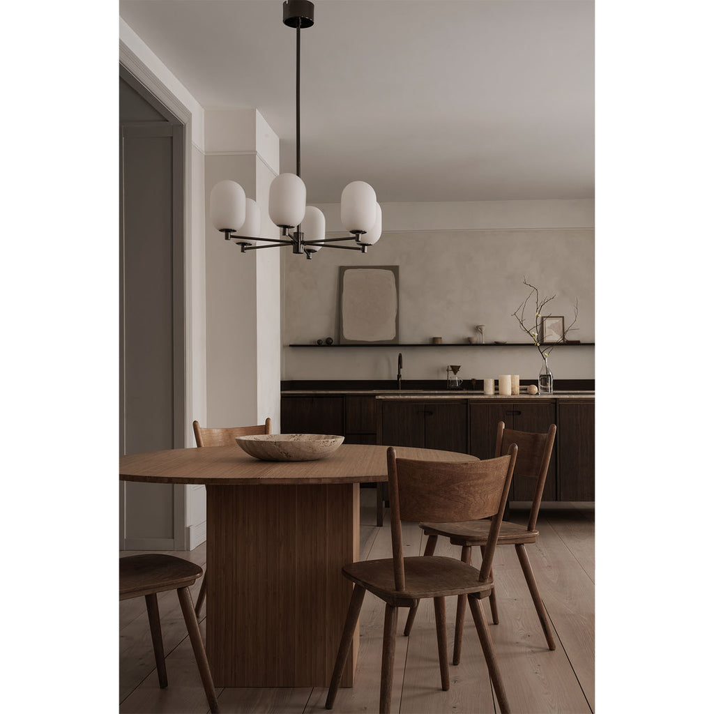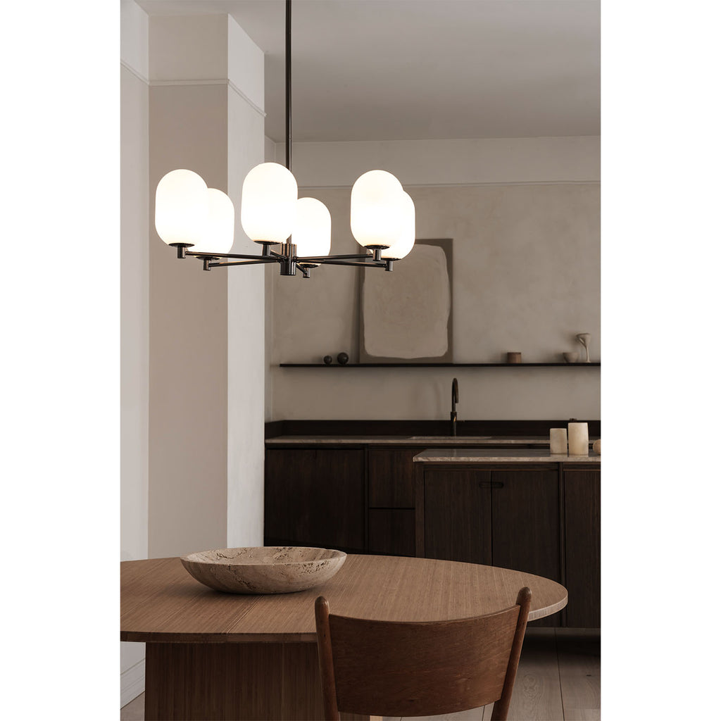 | Descrição | O lustre Noor é um candeeiro de teto elegante e sofisticado com seis globos em vidro opalino soprado com detalhes refinados em cromo preto. Concebido para combinar elegância moderna com um apelo intemporal, emite uma lux suave que cria uma atmosfera acolhedora e convidativa. Os elegantes detalhes cromados adicionam um toque luxuoso, tornando-o uma peça de destaque em qualquer espaço. Equipado com uma haste ajustável de três peças, o lustre permite personalizar a altura para se adequar ao seu espaço, tornando-o adequado para tetos altos e baixos. Ideal para criar um ambiente exclusivo na cozinha, no corredor ou na sala de jantar. O vidro soprado confere a cada candeeiro um caráter único e, quando utilizado com lâmpadas LED G9 reguláveis, obtém uma iluminação eficiente em termos energéticos e flexível para qualquer ocasião. |