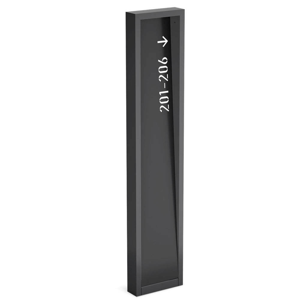 Descrição O candeeiro de balizamento Arke é uma solução geométrica e minimalista concebida para a iluminação de caminhos em exteriores.