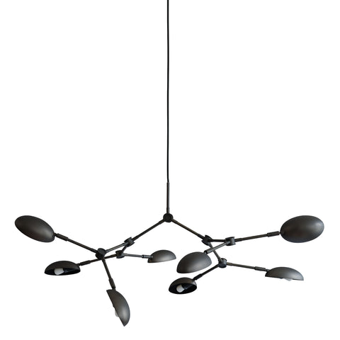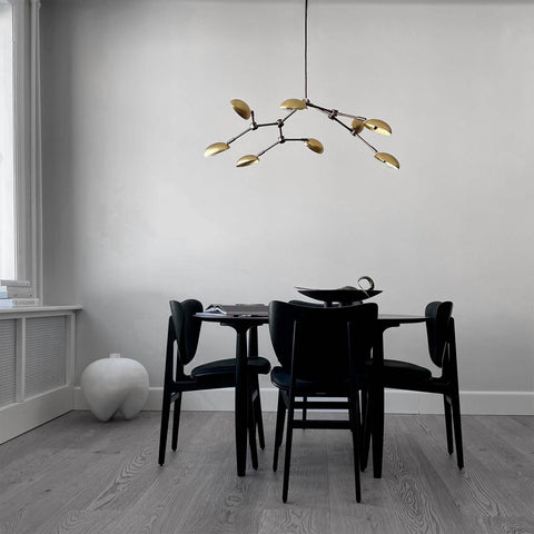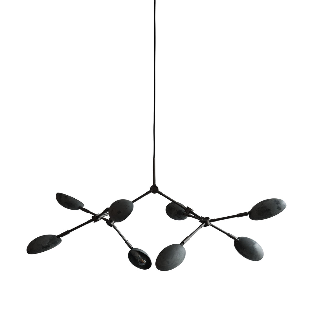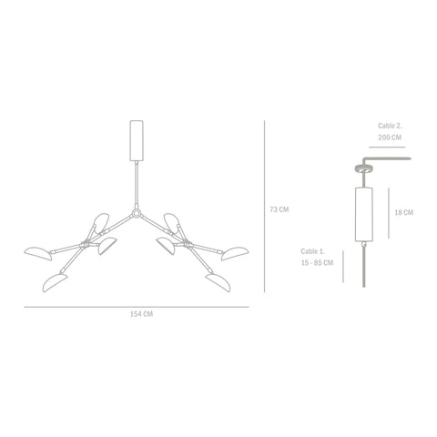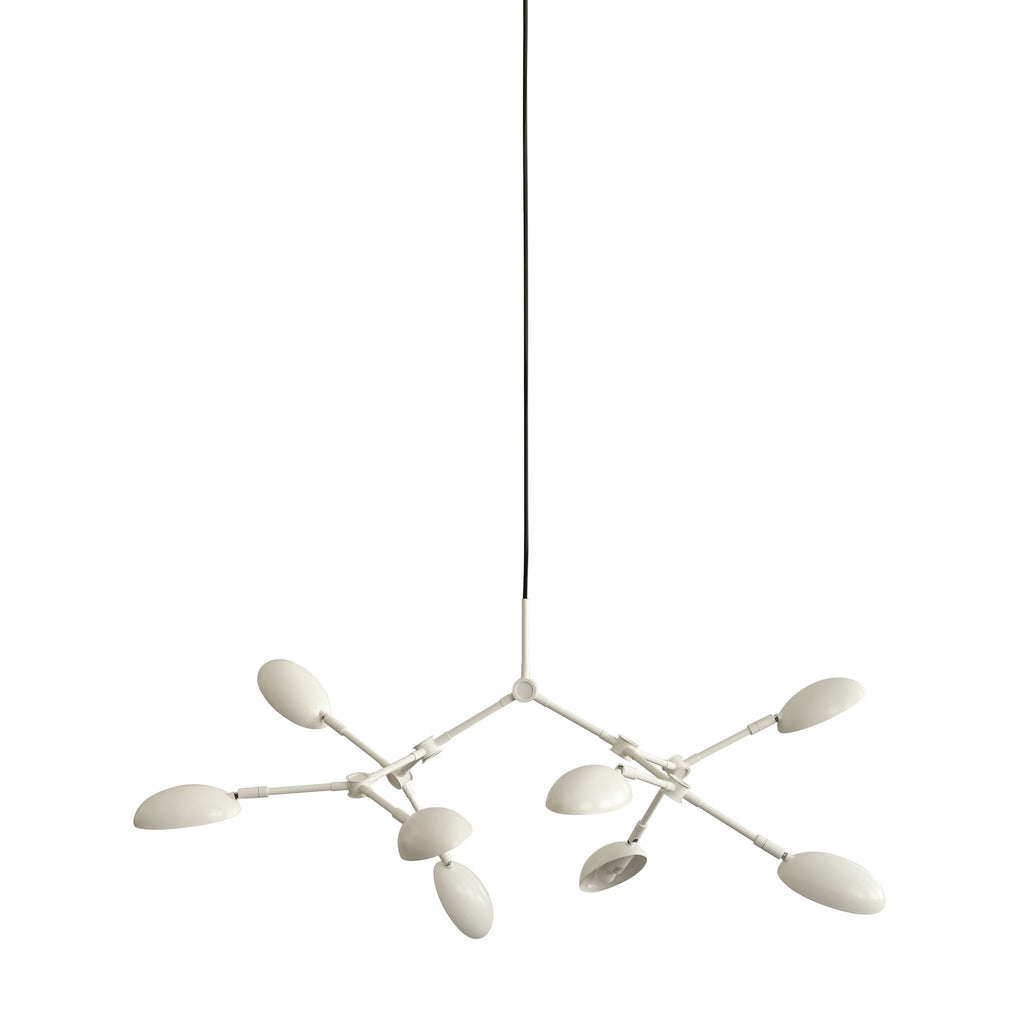 A sua estrutura fluida e orgânica revela 14 braços flexíveis e ajustáveis, oferecendo infinitas possibilidades de composição, ângulos e expressões visuais. Os 8 abajures curvos criam um jogo dinâmico de luz e sombra, tornando cada instante visualmente único e memorável.
