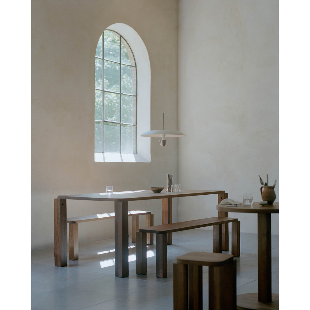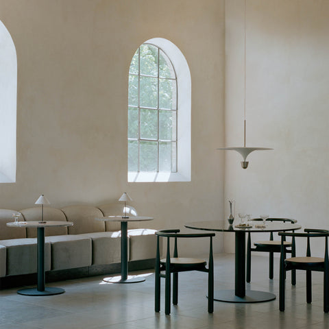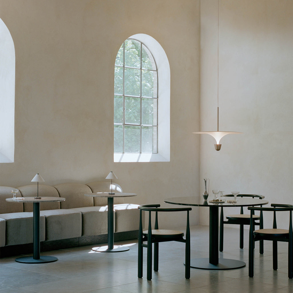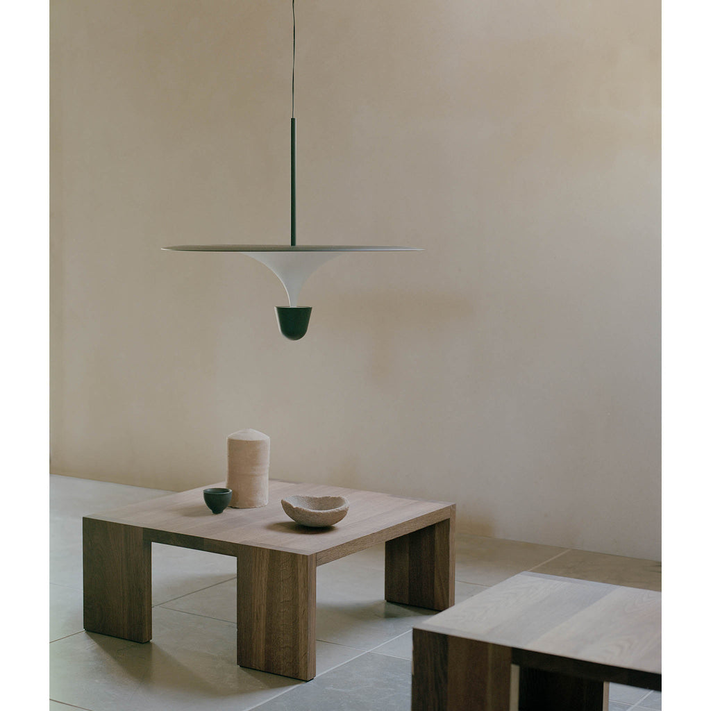 A ideia da série Kantarell surgiu de um estudo sobre a forma de direccionar a luz. Com a formato entre um trompete e um funil, Kantarell espalha a luz a partir de uma fonte quase oculta no seu centro. A silhueta elegante e gráfica criada entre os dois círculos concêntricos - o abajur e o refletor - atrai instantaneamente o olhar. Permite diferentes opções de montagem — alta ou baixa — revelando vários aspetos da sua forma poeticamente fluida, desde a parte inferior abobadada até ao topo suave. Com qualquer ponto de vista, o candeeiro suspenso Kantarell cria uma adição escultural ao espaço. Design by Falke Svatun |