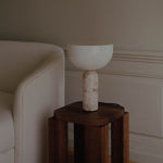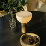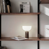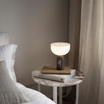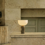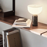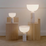 Descrição Composto por duas formas esculturais arrojadas, o candeeiro de mesa Kizu é um jogo de equilíbrio e de contrastes. A ilusão criada pelo encontro das suas formas curvas evoca uma sensação de tensão pelo aparente desafio da gravidade, mas simultaneamente de tranquilidade pelo formato arredondado da base sólida em mármore e do abajur delicado em acrílico opalino. Este ponto de encontro entre material e função cria um objeto em perfeita harmonia.