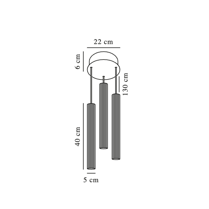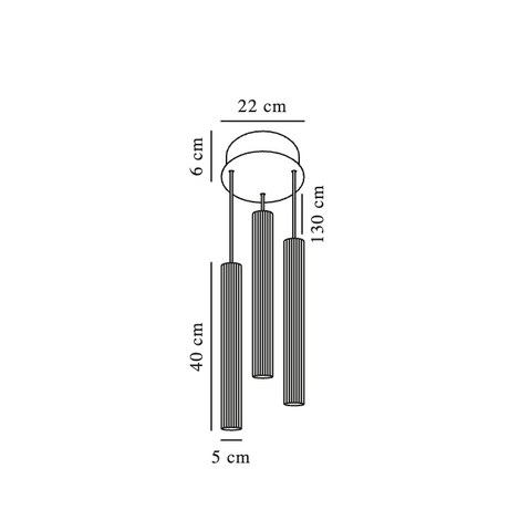 Descrição Candeeiro de 3 suspensões tubulares em metal canelado