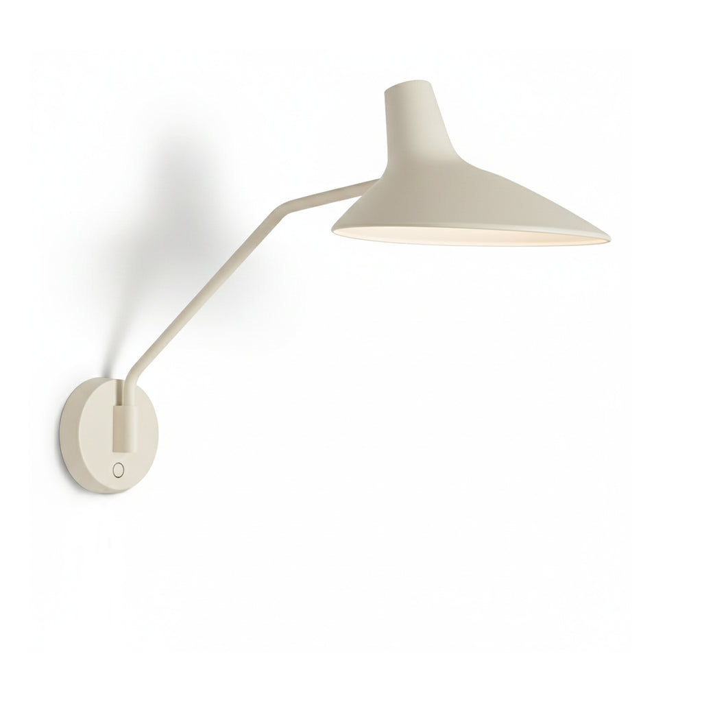 Pode ser aplicado como iluminação de cabeceira de cama, na bancada de cozinha ou em qualquer outro espaço que necessite de uma luz elegante e funcional. A campânula ligeiramente curvada é facilmente ajustada para ler, trabalhar ou simplesmente adicionar o ambiente certo à sala. Fabricado com materiais de alta qualidade e com um acabamento mate. Design Bjørn+ Balle. Interruptor touch na base de parede. |