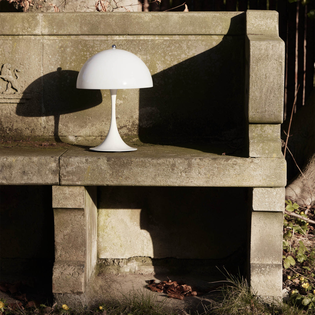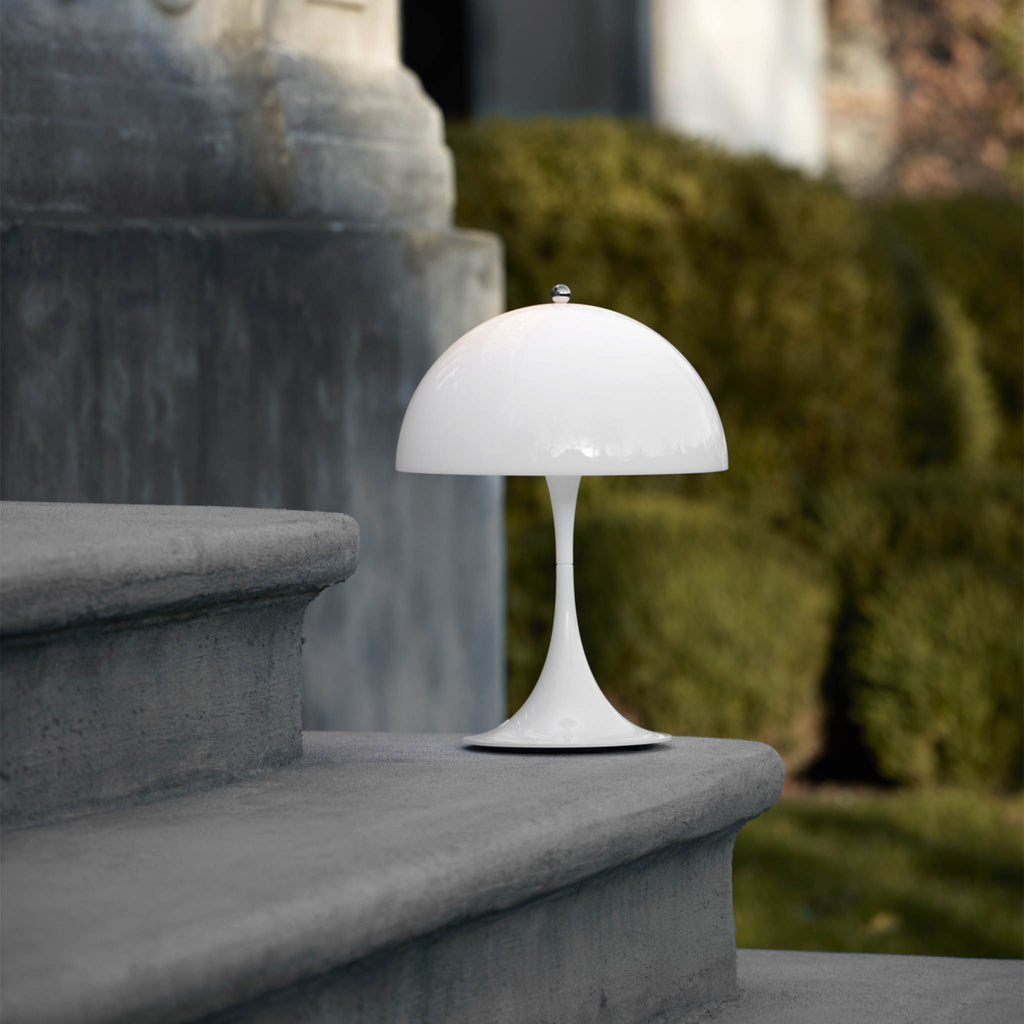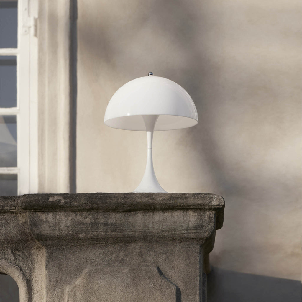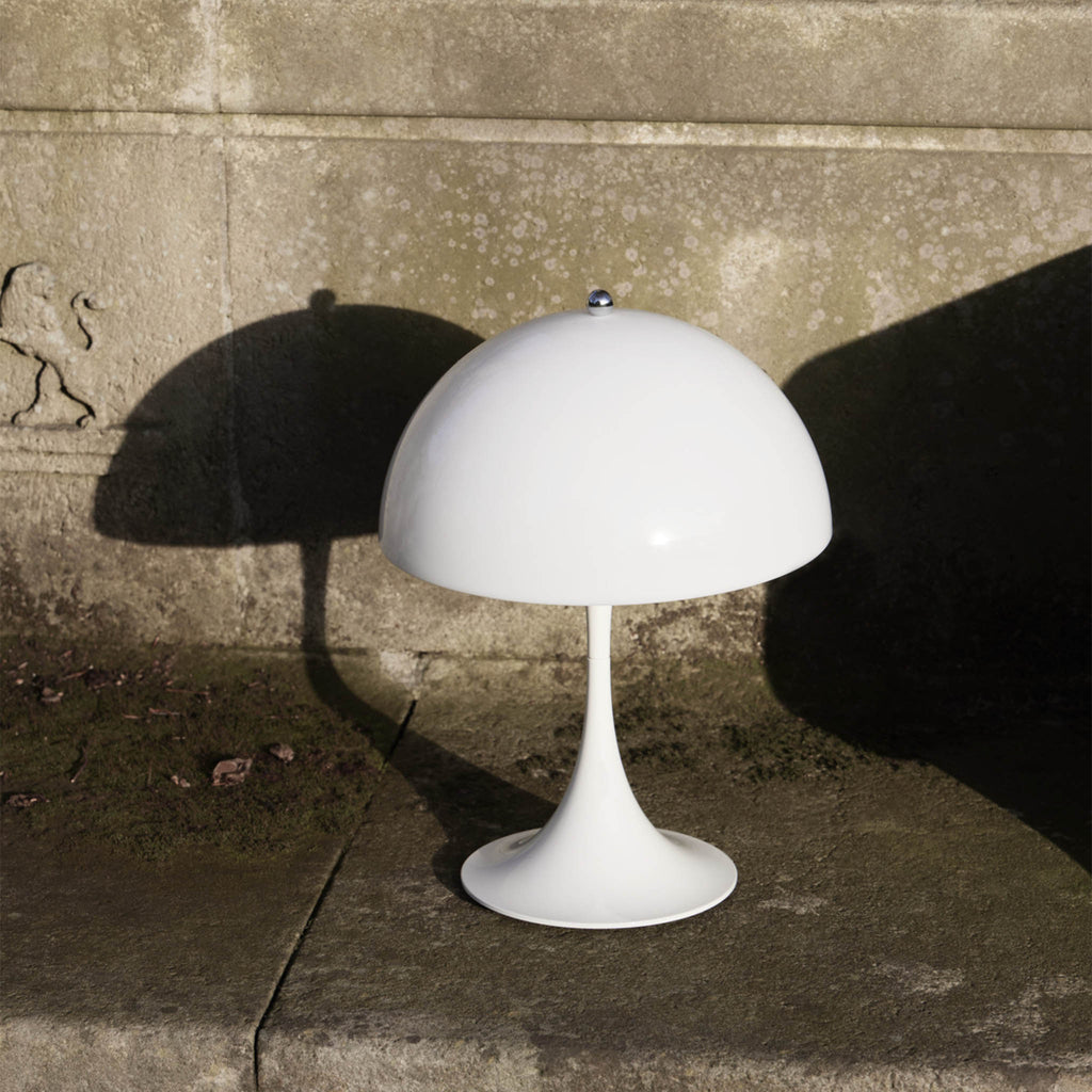 O modelo Panthella 250 é uma das duas versões portáteis e sem fios dos candeeiros de mesa Panthella. Oferece uma solução de tamanho convencional, moderna e flexível, com a conveniência da bateria recarregável que permite facilmente transportá-lo entre divisões da casa ou utilizá-lo no exterior, na varanda ou no jardim.