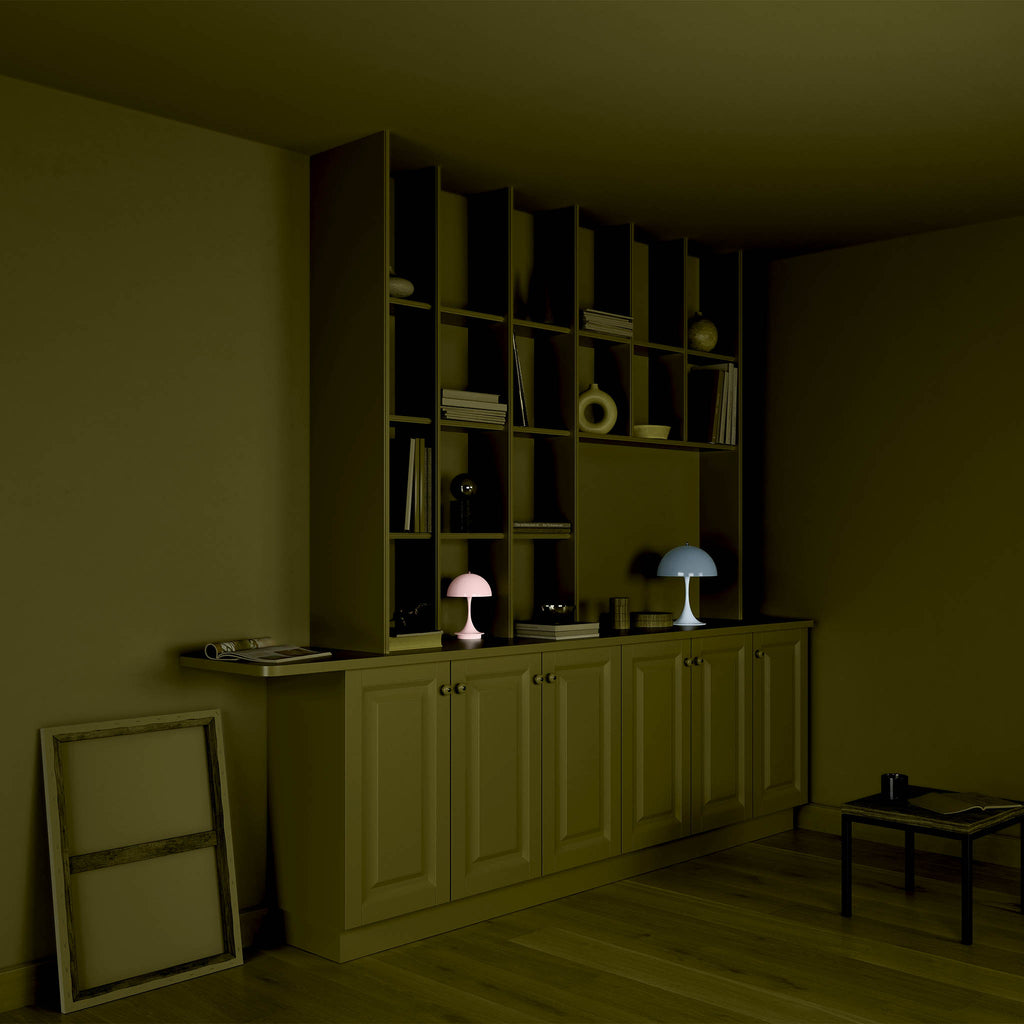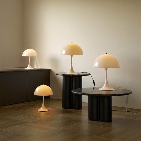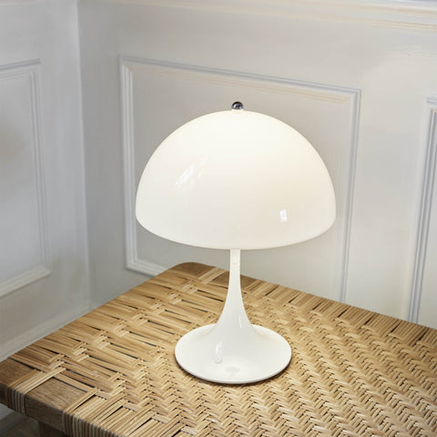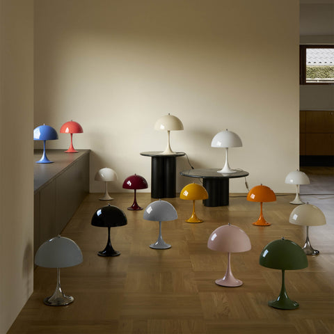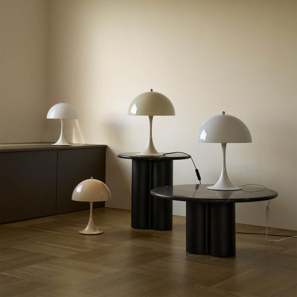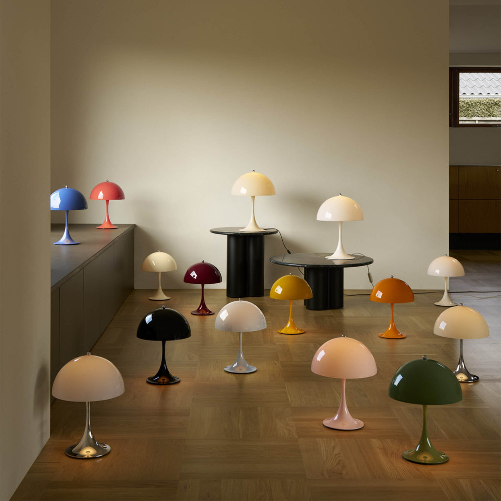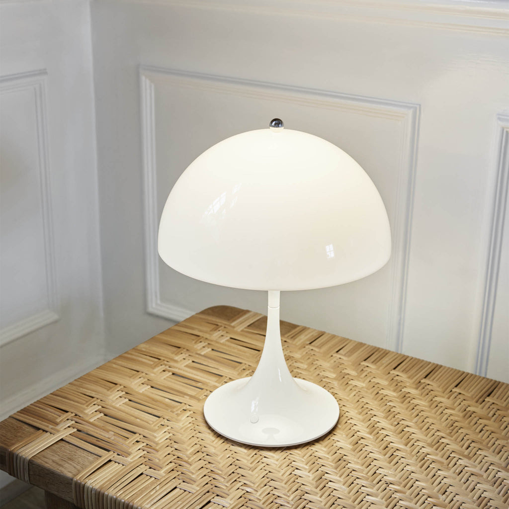 O modelo Panthella 250 é uma das duas versões portáteis e sem fios dos candeeiros de mesa Panthella. Oferece uma solução de tamanho convencional, moderna e flexível, com a conveniência da bateria recarregável que permite facilmente transportá-lo entre divisões da casa ou utilizá-lo no exterior, na varanda ou no jardim.