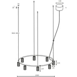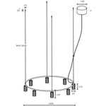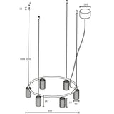 Donna Circle é um candeeiro suspenso de forma circular, fabricado em alumínio leve e com acabamento mate. Possui 6 ou 8 fontes de luz dispostas simetricamente.