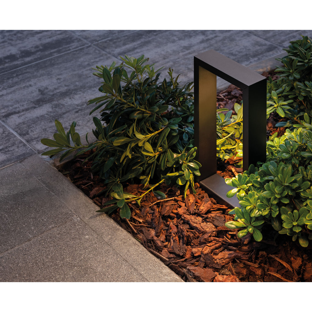 Descrição O candeeiro exterior de pavimento para iluminação de balizamento Arke é uma solução geométrica e minimalista concebida para a iluminação de caminhos em exteriores.