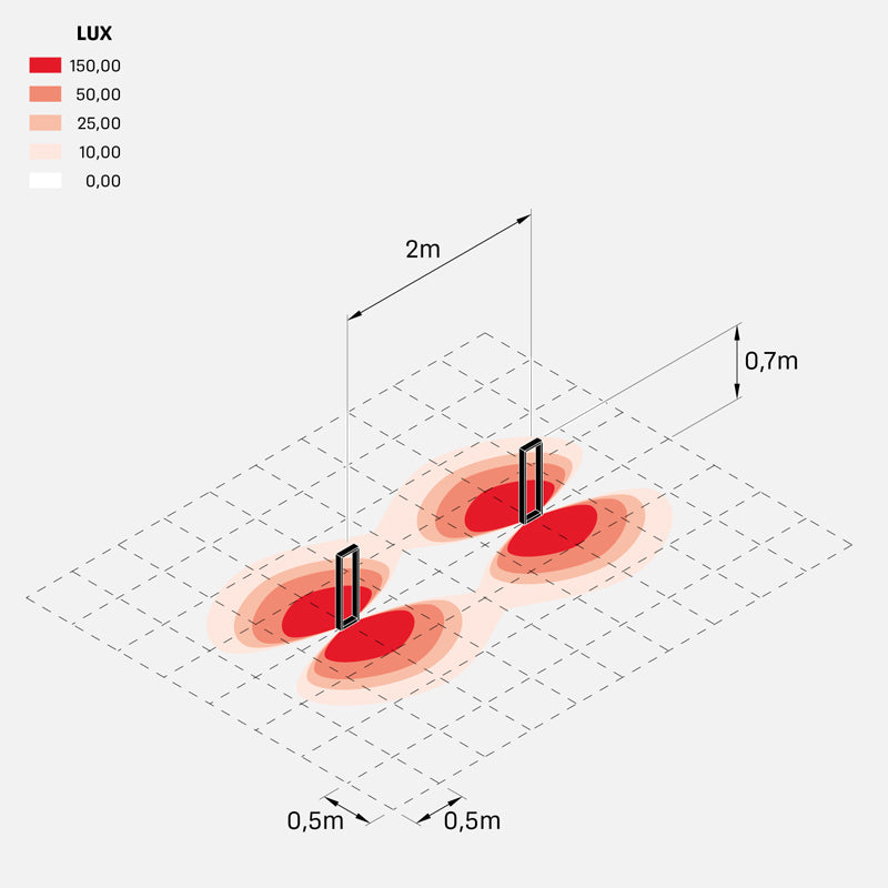O corpo é fabricado em alumínio extrudido e fundido, assegurando elevada resistência à oxidação devido ao tratamento de cataforese e de passivação com zircónio, e pintura com resinas de poliéster estabilizadas contra raios UV. O produto possui proteção IP66 e ferragens em aço inoxidável A4.