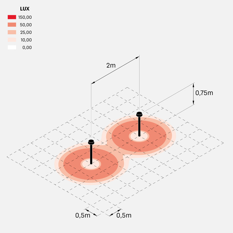 Emissão de luz distribuída por um difusor em policarbonato com tripla estabilização UV e tratamento anti-riscos e anti-UV. Construção durável com corpo em alumínio fundido. Elevada resistência à sujidade e água (IP66 e IK10), e à corrosão, assegurada por um tratamento de passivação à base de zircónio e revestimento de resina de poliéster com estabilização UV, protegendo contra a oxidação e o desvanecimento da cor.