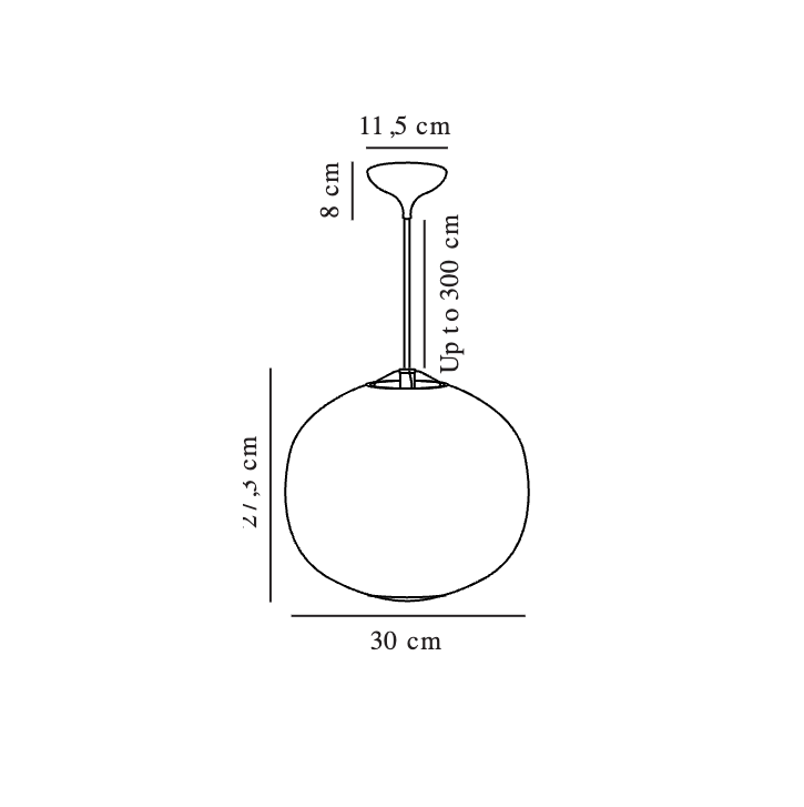 | Copo de teto (cm) | Navone 20 e 30: ⌀11,5 H8 Navone 40: ⌀12,4 H9 |