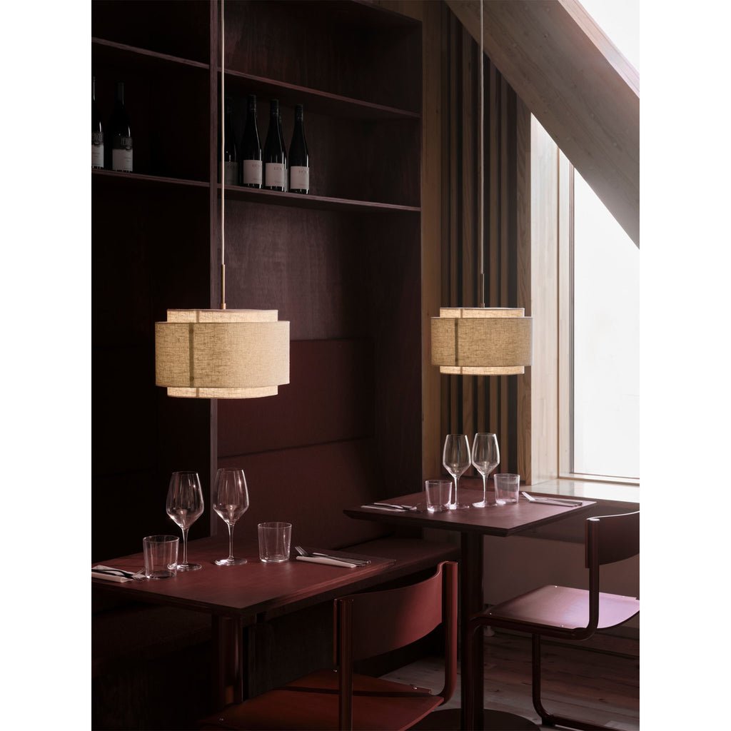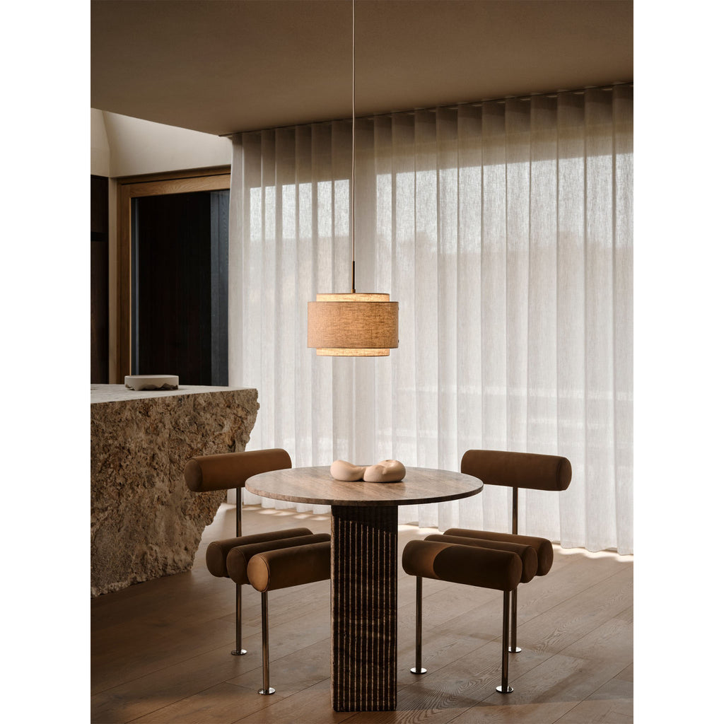 O candeeiro suspenso Takai, assinado pelo Studio Mavro//Lefèvre, é uma peça de iluminação que privilegia a sofisticação tátil e a geometria orgânica.