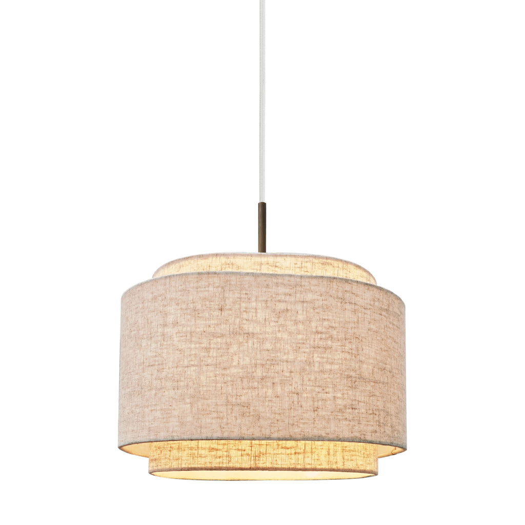 O seu abajur em tecido apresenta um formato distinto que convida à observação a partir de diversos ângulos, tornando-se um ponto de interesse visual em qualquer configuração de interior.