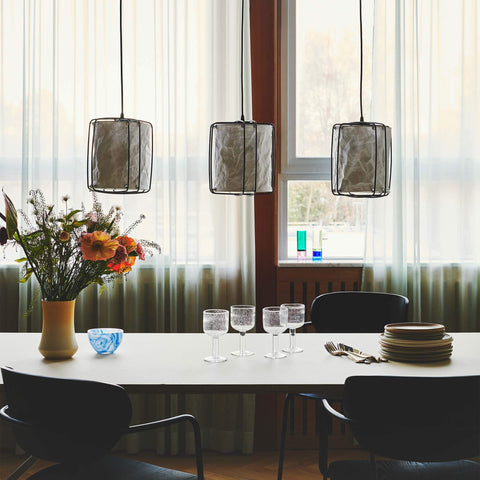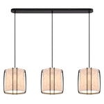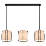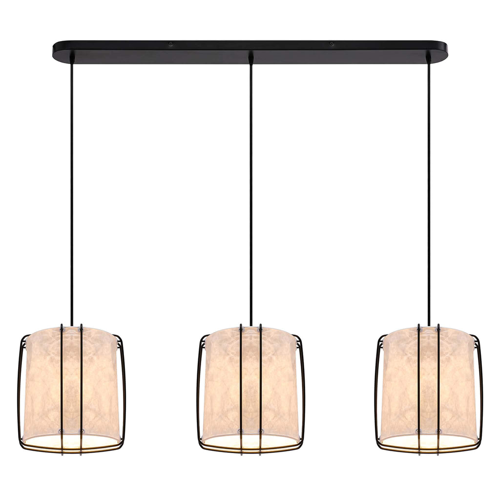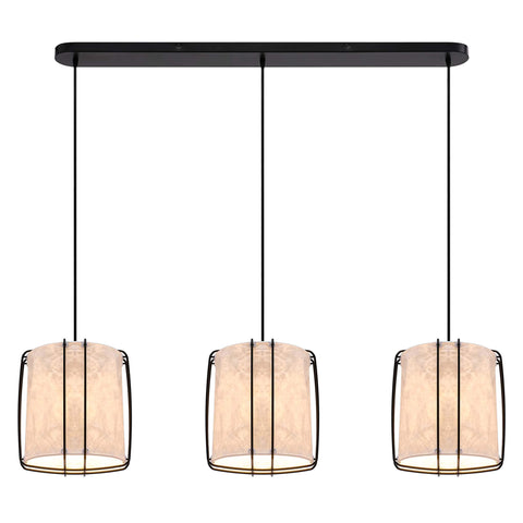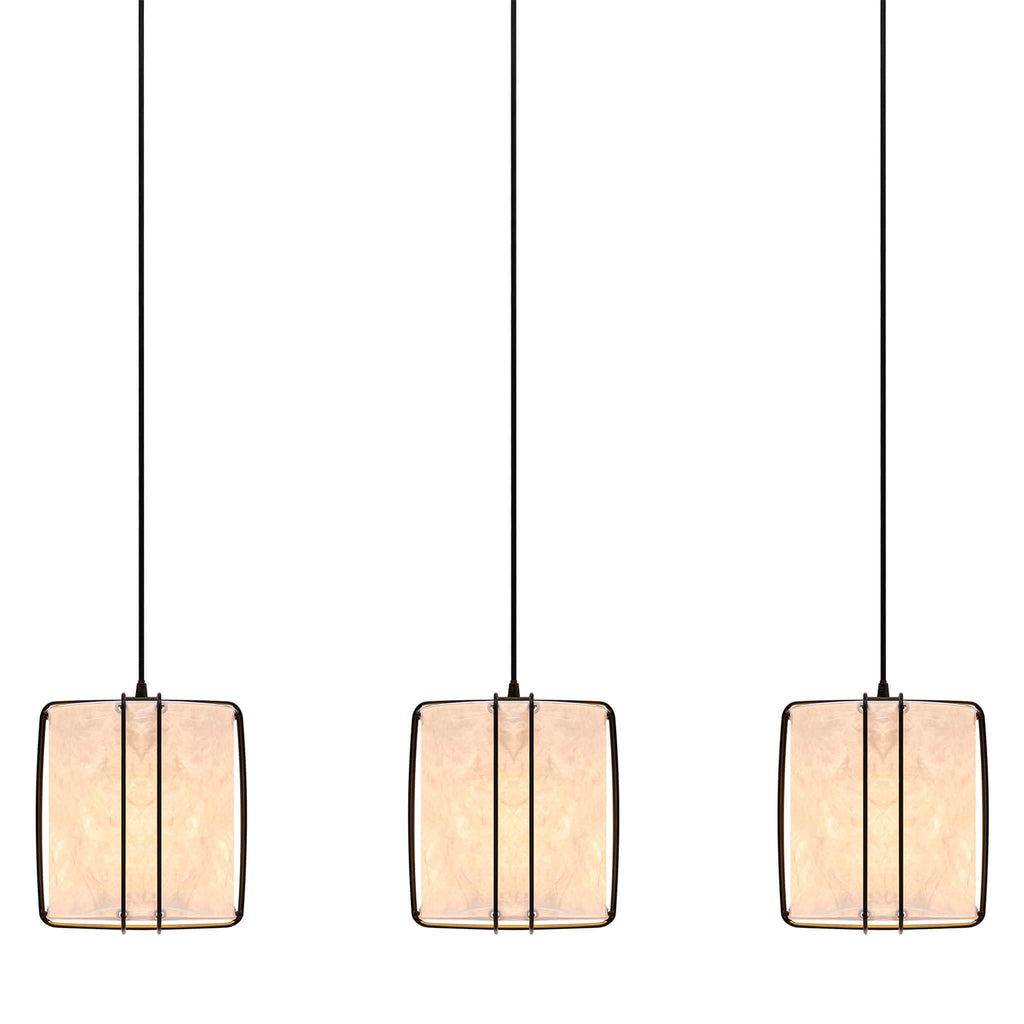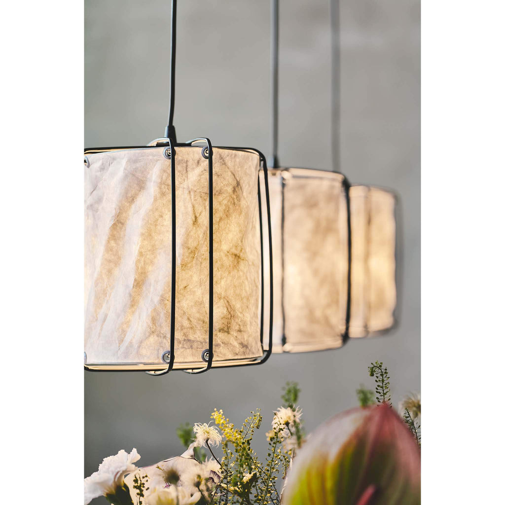 Candeeiro suspenso de estilo japandi com 3 abajures em tyvek enrugado. Disponível em 2 tamanhos |